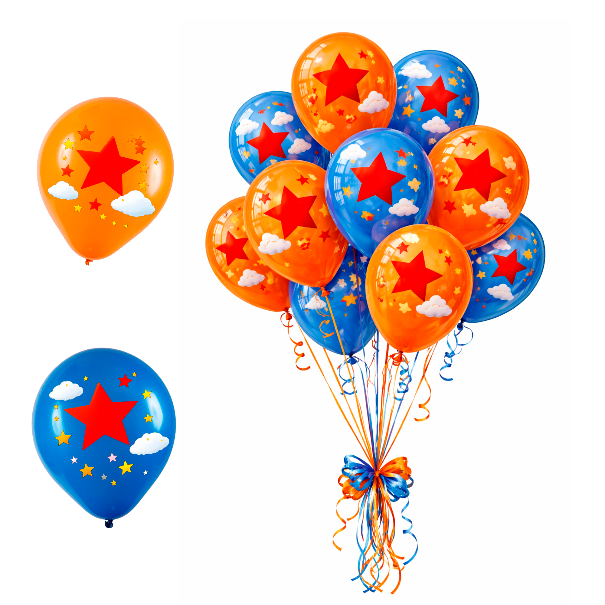Balões N11 ideais para decoração de festas com tema Dragon Ball, perfeitos para aniversários infantis, festas temáticas e eventos em geral. Com cores vibrantes e estampa temática, ajudam a criar um ambiente divertido, colorido e impactante.