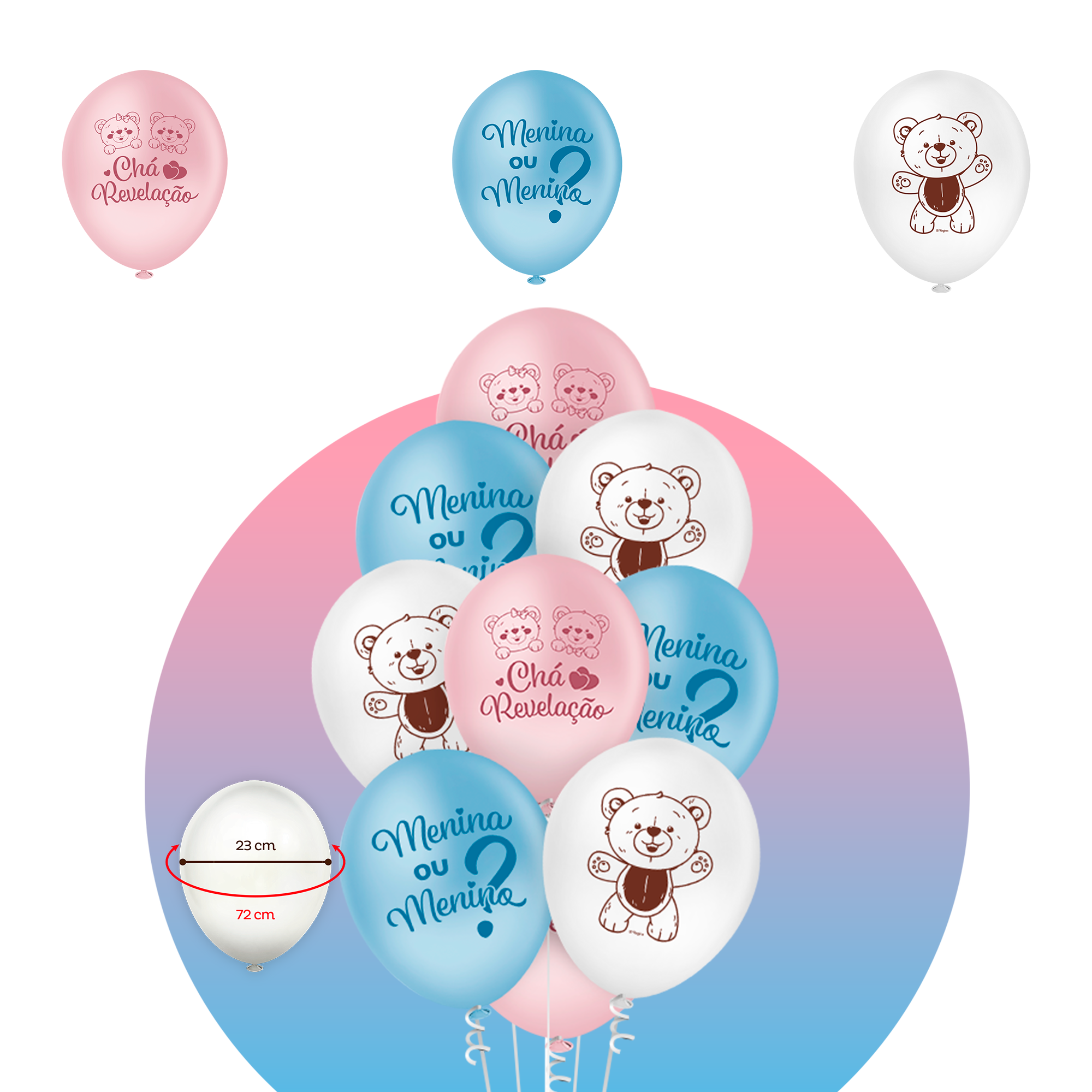 Essas bexigas são o complemento perfeito para criar uma atmosfera mágica, delicada e divertida, deixando o seu chá revelação ainda mais especial e cheio de amor!
