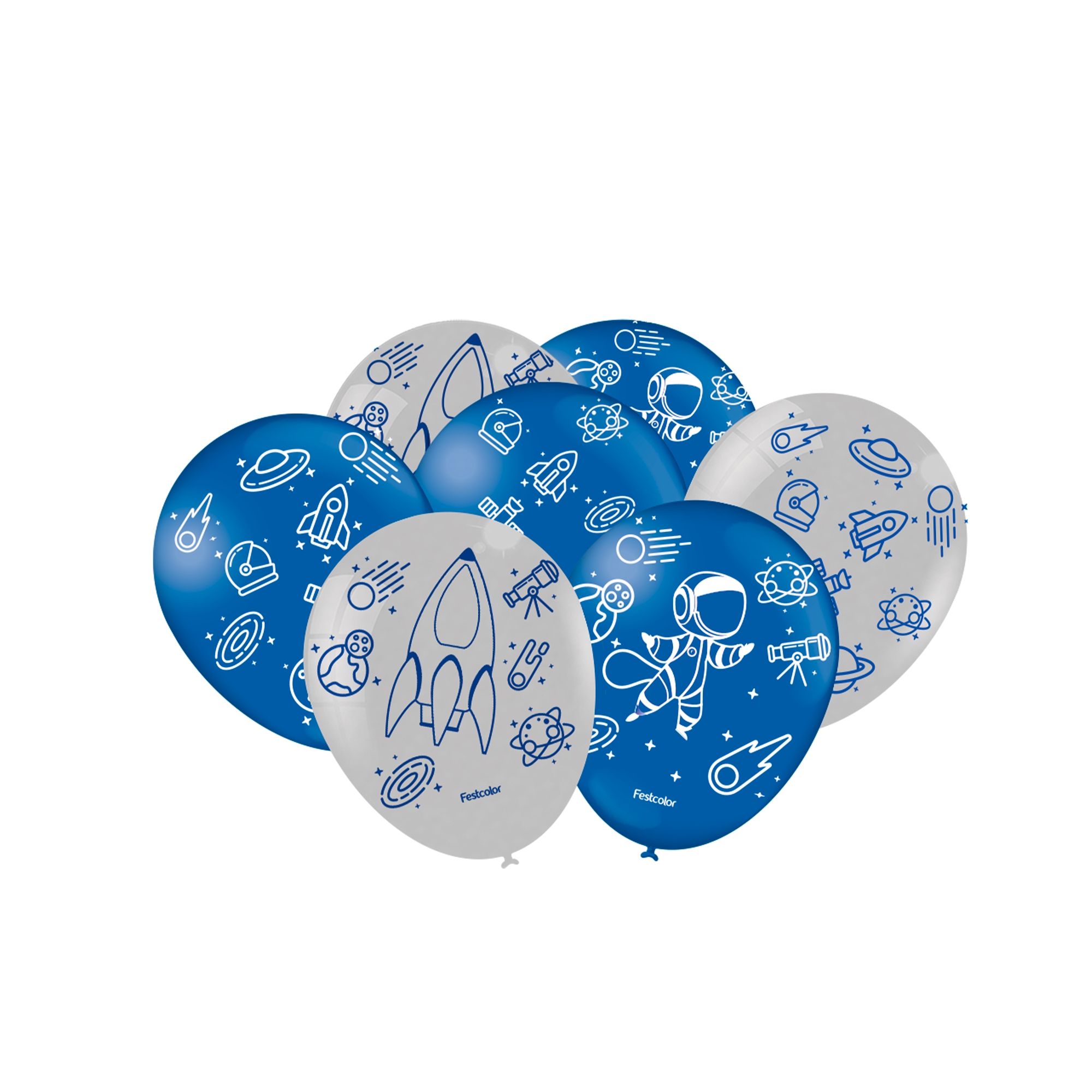 Com essas bexigas espaciais azul e branca, sua festa astronauta vai decolar rumo à diversão, com um visual que encanta crianças e adultos!