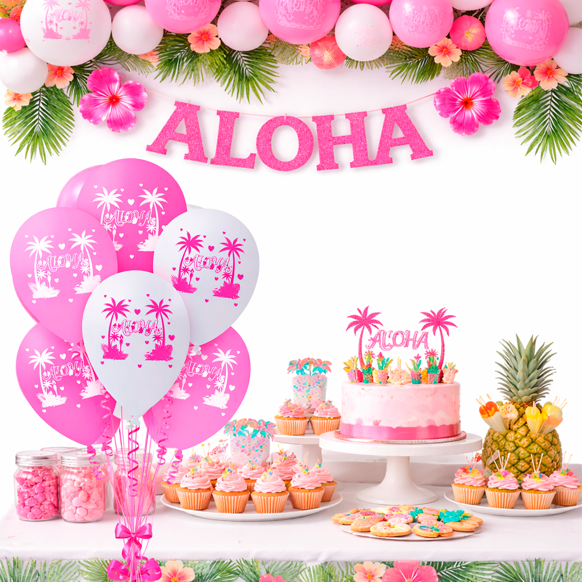Deixe sua festa ainda mais alegre e colorida com este kit de balões no tema Aloha! Perfeito para aniversários, festas tropicais, havaianas e eventos de verão.