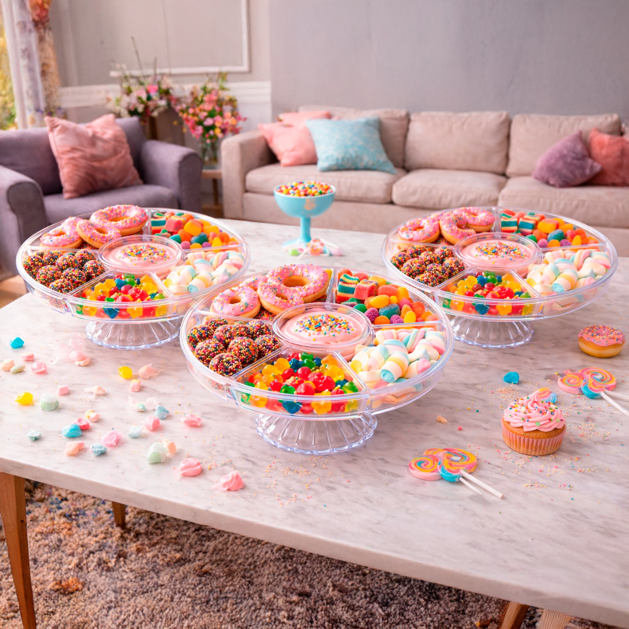 Petisqueira em acrílico luxo, ideal para servir petiscos, fondue, frios, doces, molhos e acompanhamentos com elegância e praticidade. Perfeita para festas, eventos, confraternizações e uso doméstico, valorizando a mesa com um visual moderno e sofisticado.