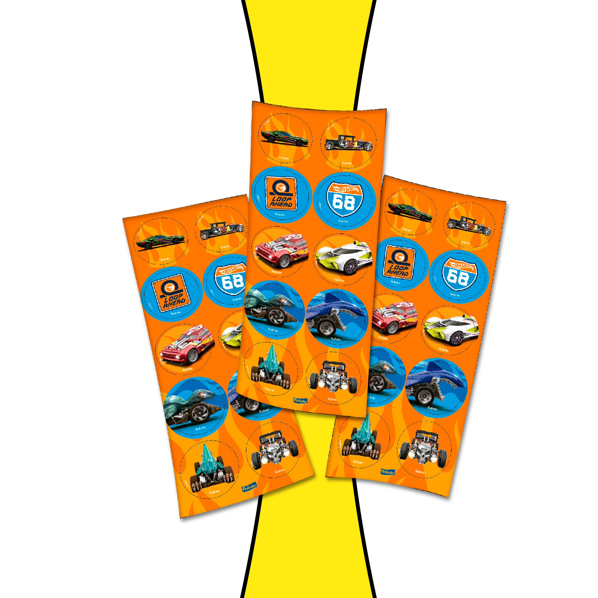 30 Adesivos redondo decoração Hot Wheels festa aniversário
