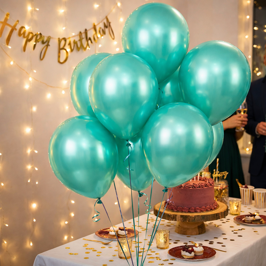 Pacote com 50 balões nº 5 na cor verde água, perfeitos para criar uma decoração leve, moderna e delicada em aniversários, chás de bebê, festas infantis e eventos especiais. A tonalidade verde água combina facilmente com paletas suaves e temas tropicais, marítimos ou candy color.