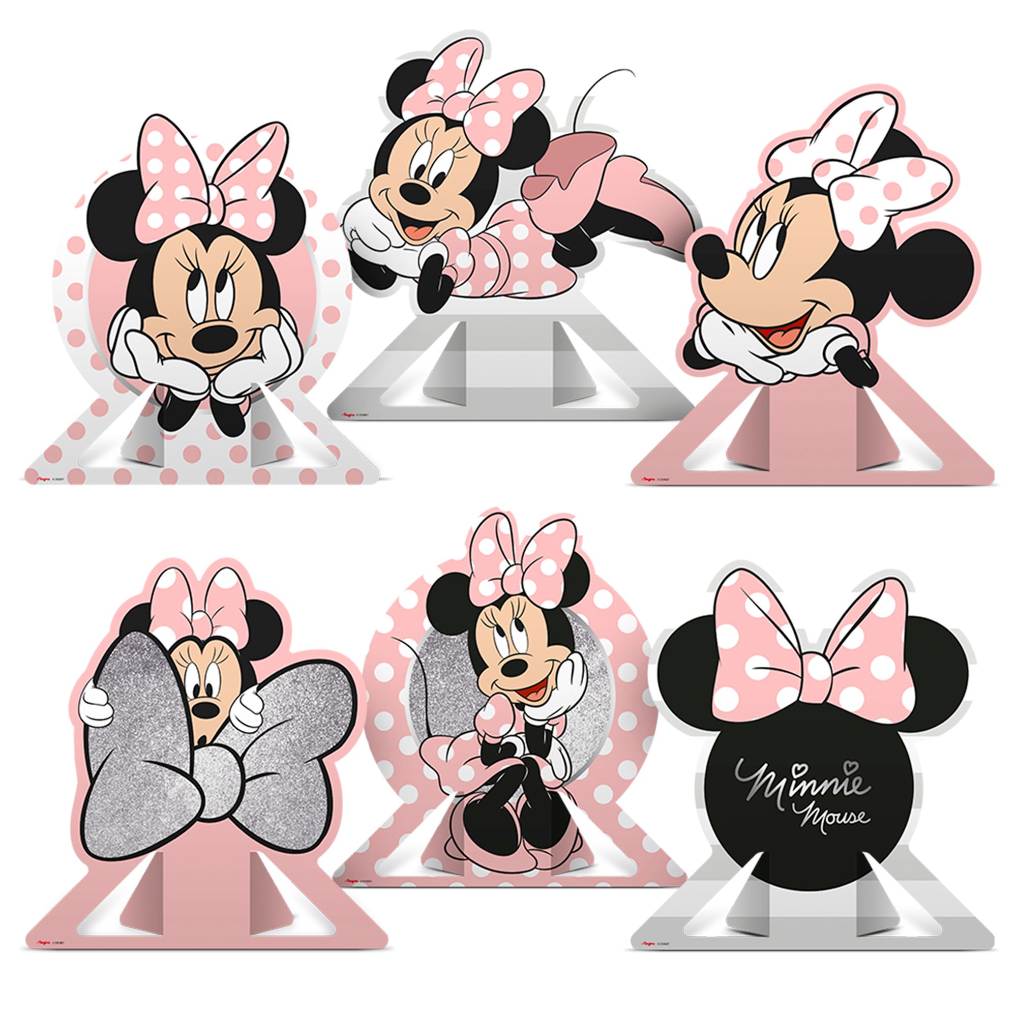 6 Display de mesa decoração Minnie Rosa festa aniversário