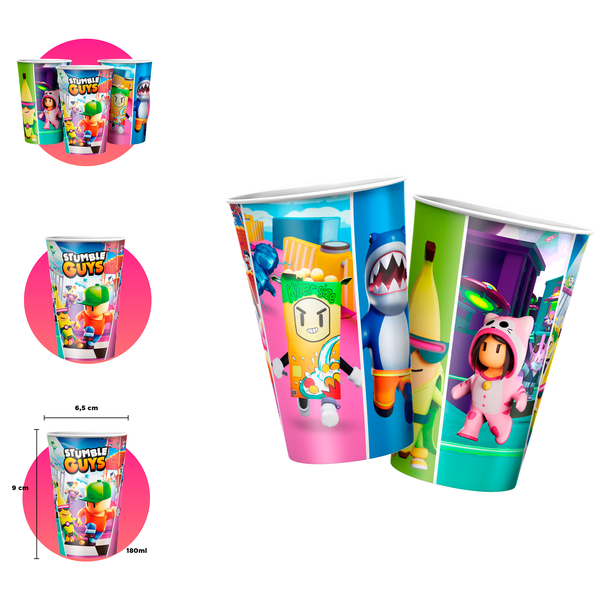 Com esses copos de 180 ml do tema Stumble Guys, sua festa se transforma em um verdadeiro jogo de cores, movimento e muita alegria!