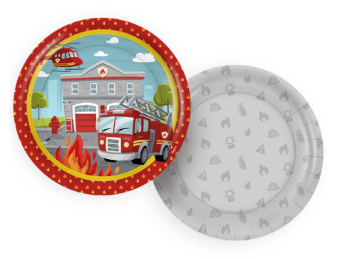 8 Pratos Redondos Decoração Bombeiros – Festa de Aniversário – 18cm