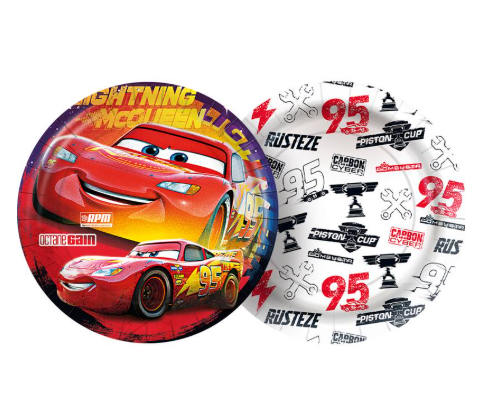 Adicione velocidade e diversão à sua festa com este kit de 8 pratos descartáveis com o tema Disney Carros! Com 18cm de diâmetro, são ideais para servir doces, salgadinhos e lanches em festas infantis, especialmente com o personagem Relâmpago McQueen e sua turma em destaque.