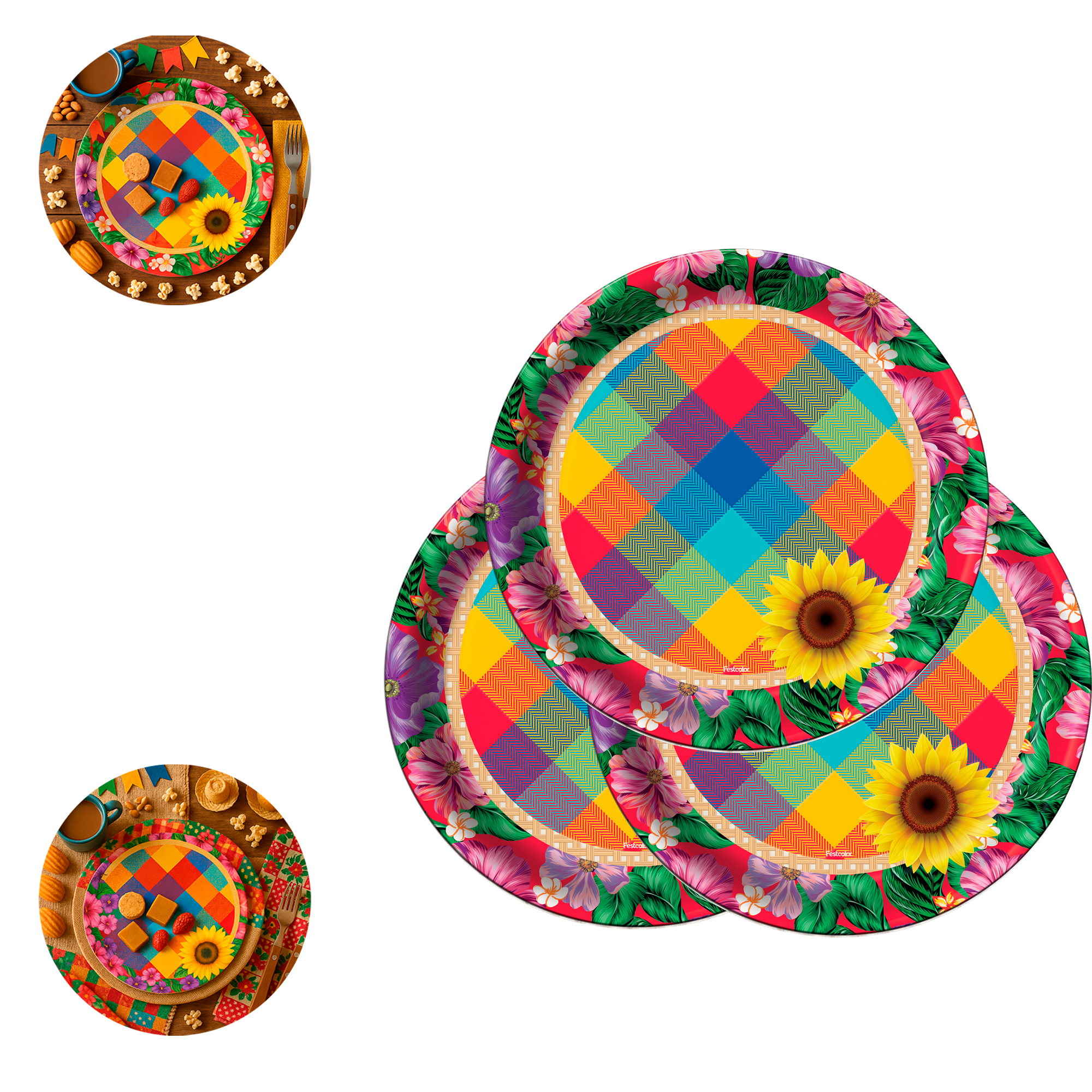 Os 8 Pratos Redondos Decoração Junina – Festa Julina são ideais para trazer mais cor, alegria e tradição à mesa da sua festa! Com estampas típicas das celebrações de São João, esses pratos descartáveis deixam o momento das refeições mais divertido e totalmente no clima do arraiá.