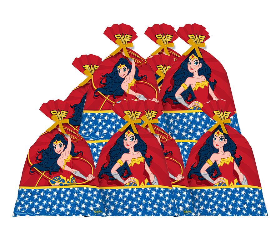 8 Sacolas Supresa Decoração Mulher Maravilha Kids Festa Aniversário