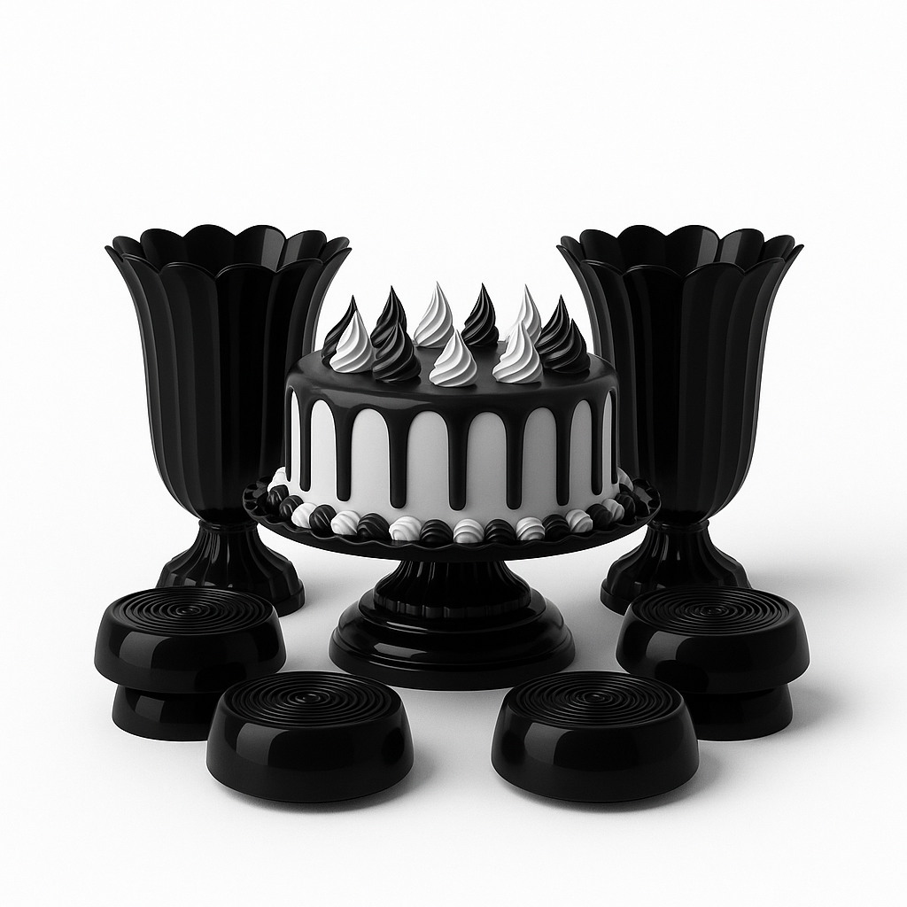 Monte uma mesa decorativa completa, equilibrada e cheia de estilo com o Kit Boleira Plus. Ideal para festas, eventos e mesas temáticas, esse conjunto reúne as principais peças para valorizar bolos, doces, arranjos e lembrancinhas com praticidade e bom gosto.