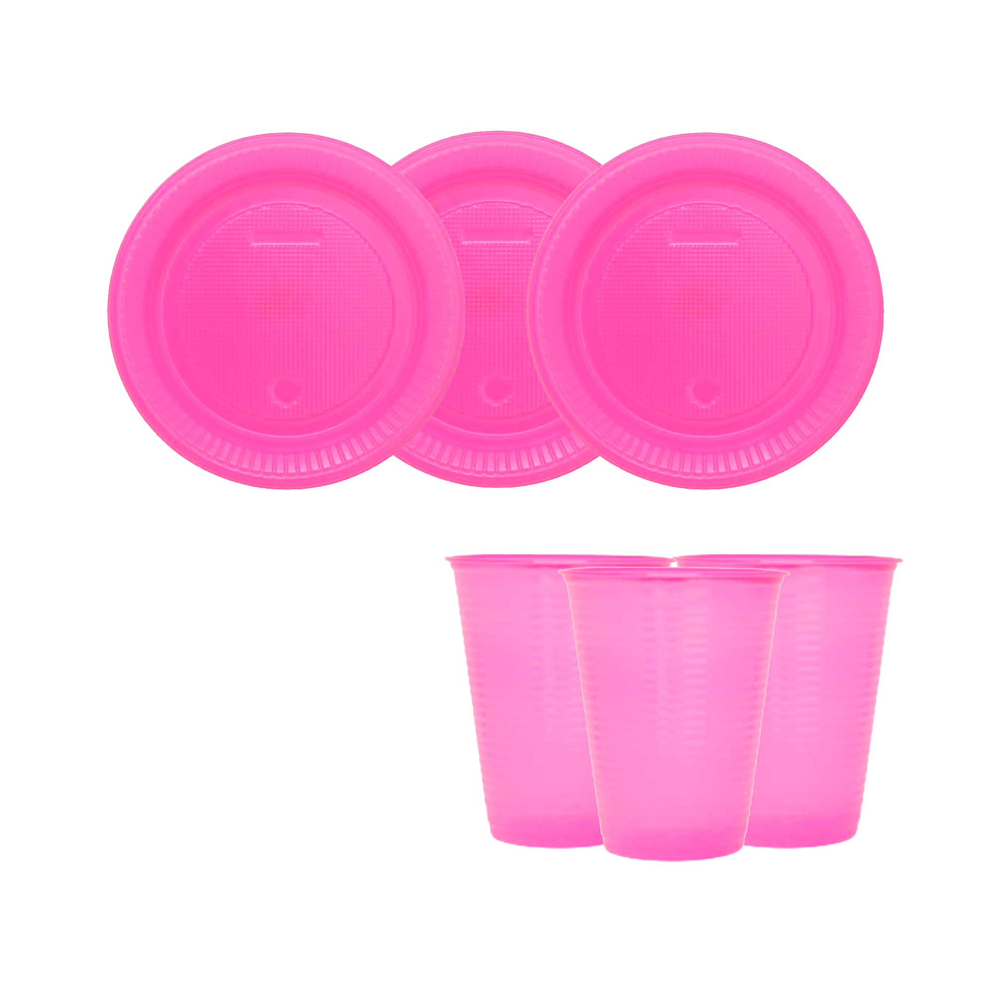 O kit inclui tudo o que você precisa: 150 copos descartáveis de 200ml, 140 pratos de sobremesa de 15cm, todos em uma vibrante cor Rosa . Seja para aniversários, churrascos, ou encontros informais, nossos descartáveis são duráveis e garantem uma experiência sem complicações.