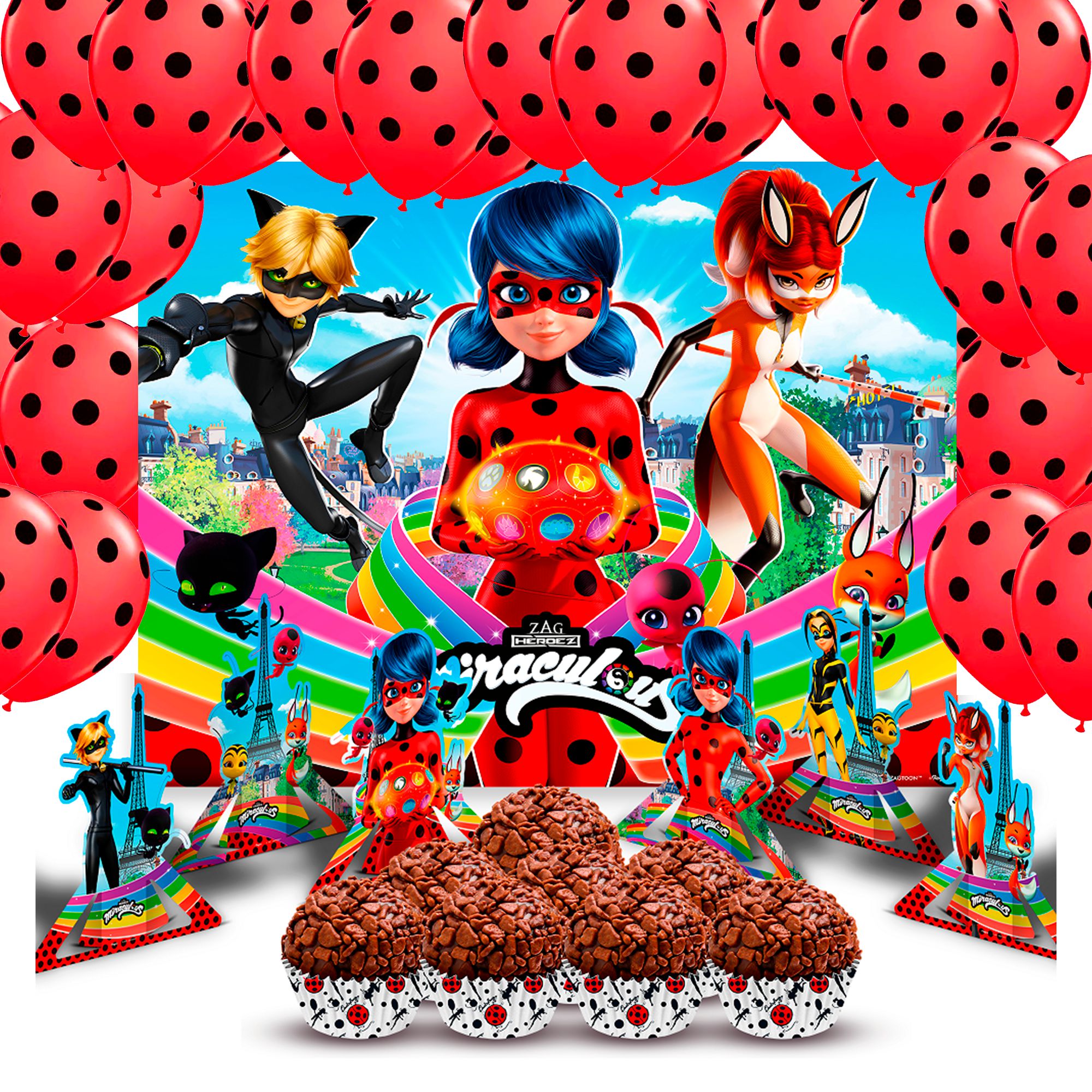 Kit festa 132 pçs Decoração Ladybug anive mais completo
