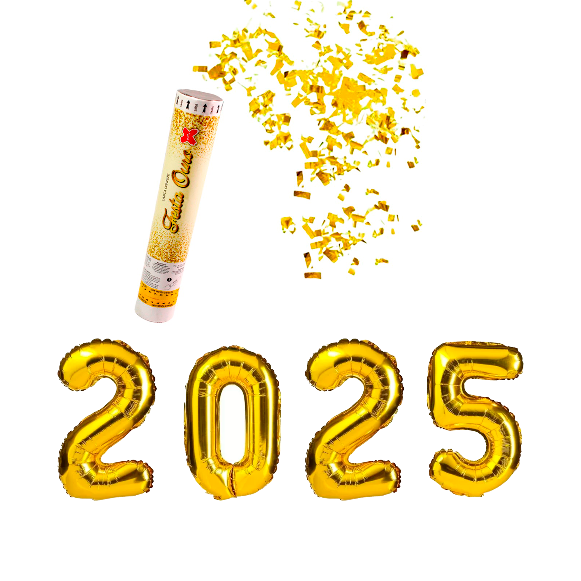 Material de Qualidade: Balões duráveis e de fácil enchimento, com acabamento metalizado que garante um brilho especial. O lança confetes é seguro e fácil de usar, perfeito para surpreender os convidados na contagem regressiva.