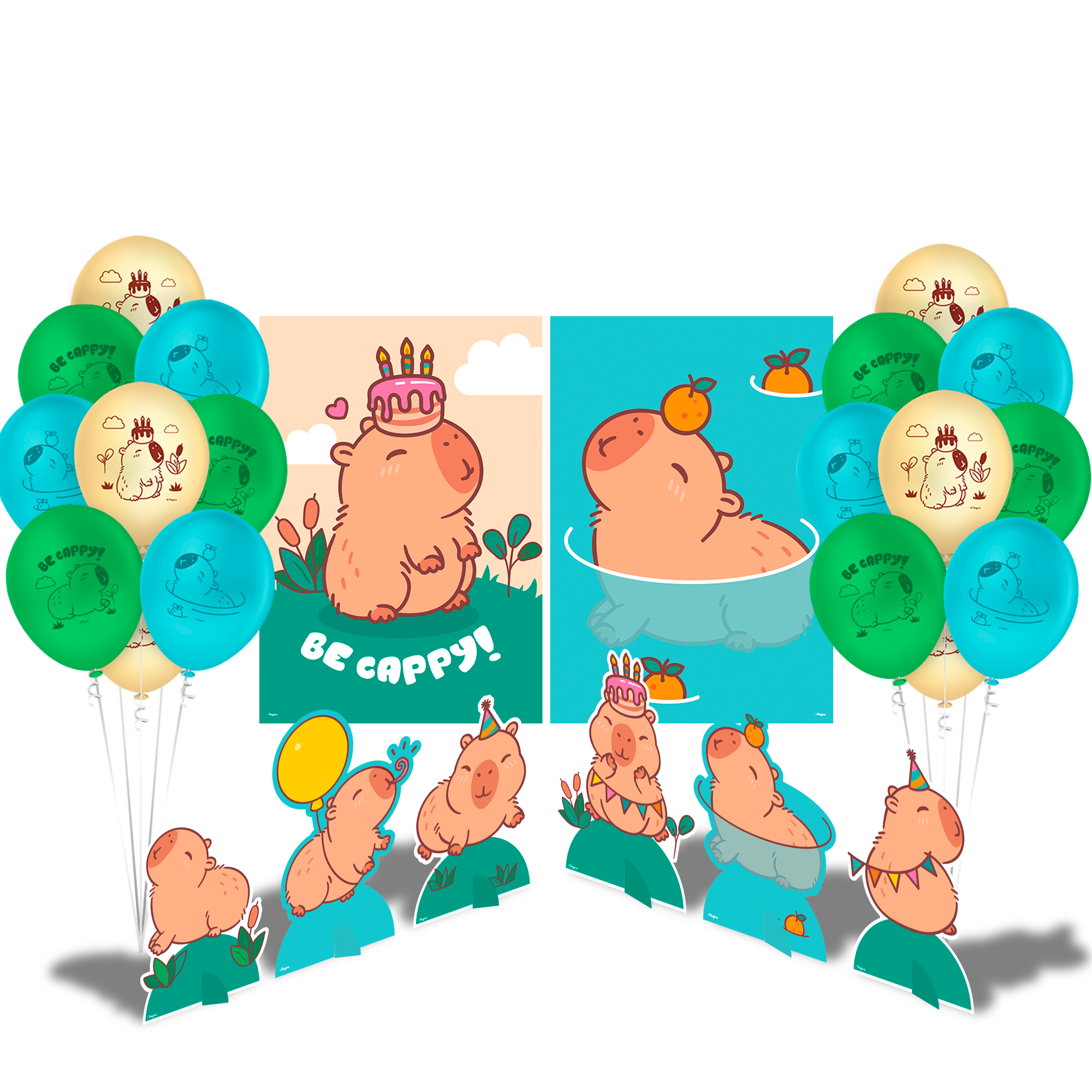 Um kit completo e divertido para transformar qualquer festa no mundo encantado das capivaras! Ideal para aniversários temáticos, festas infantis ou eventos com decoração fofa e descontraída.