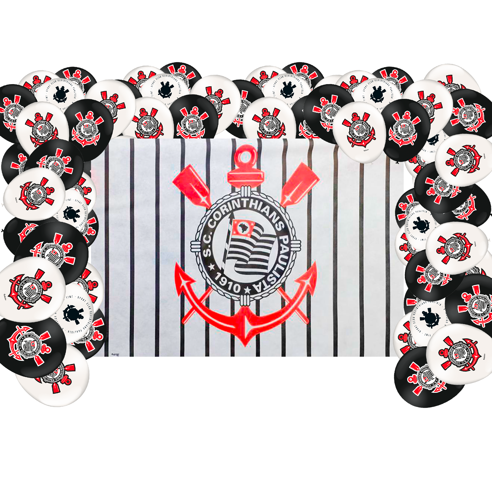 Kit festa Decoração Corinthians Painel GIGANTE + 25 balões