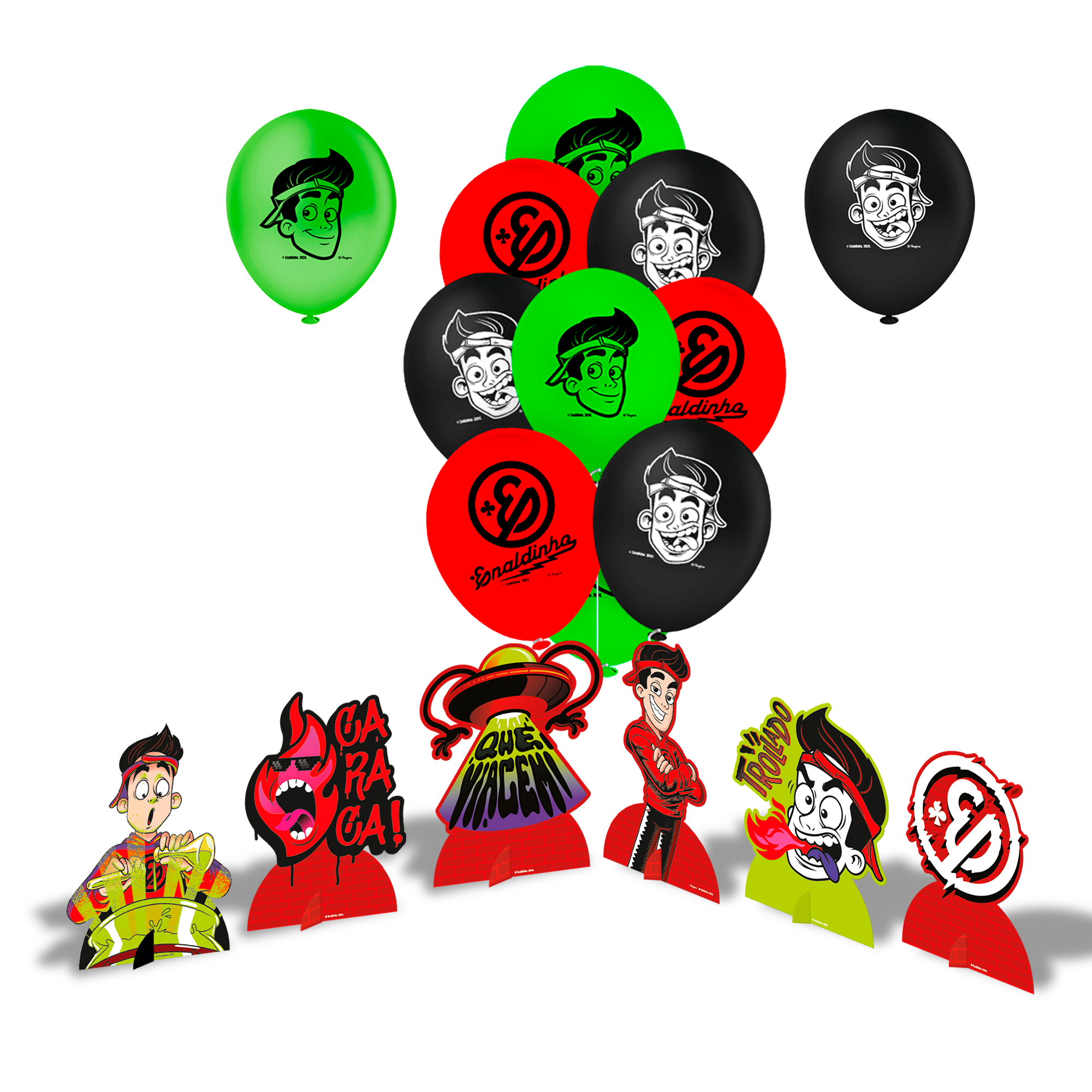 Leve a energia e diversão do Enaldinho para a sua festa com esse kit decorativo completo! Ideal para fãs do youtuber, o conjunto inclui balões personalizados e displays temáticos para montar uma mesa super animada.