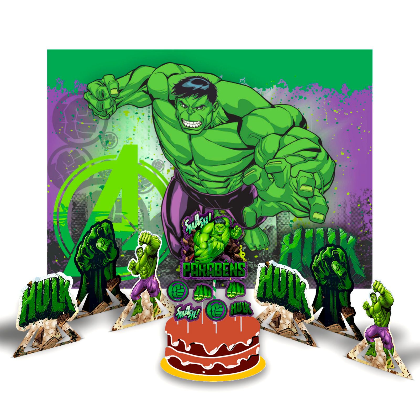Além disso, o kit conta com 6 encantadores Display de mesa, cada um medindo 19cm, proporcionando uma decoração encantadora para cada cantinho da festa. Esses displays são ideais para adicionar um toque especial às mesas dos convidados, trazendo a alegria e a diversão dos personagens da HULK para perto de todos.