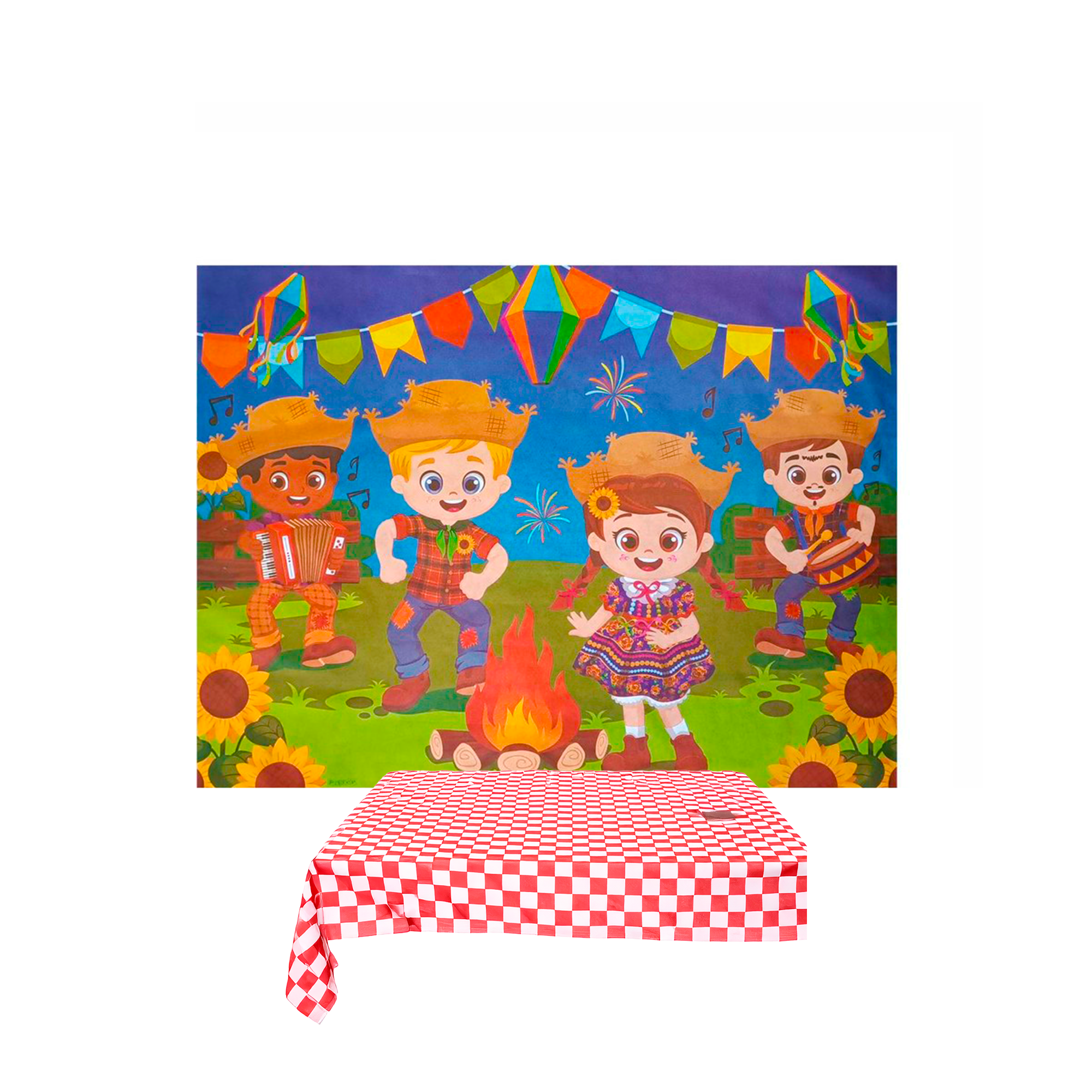 Kit Festa Junina Arraiá Julina – Painel + Toalha Xadrez 1m