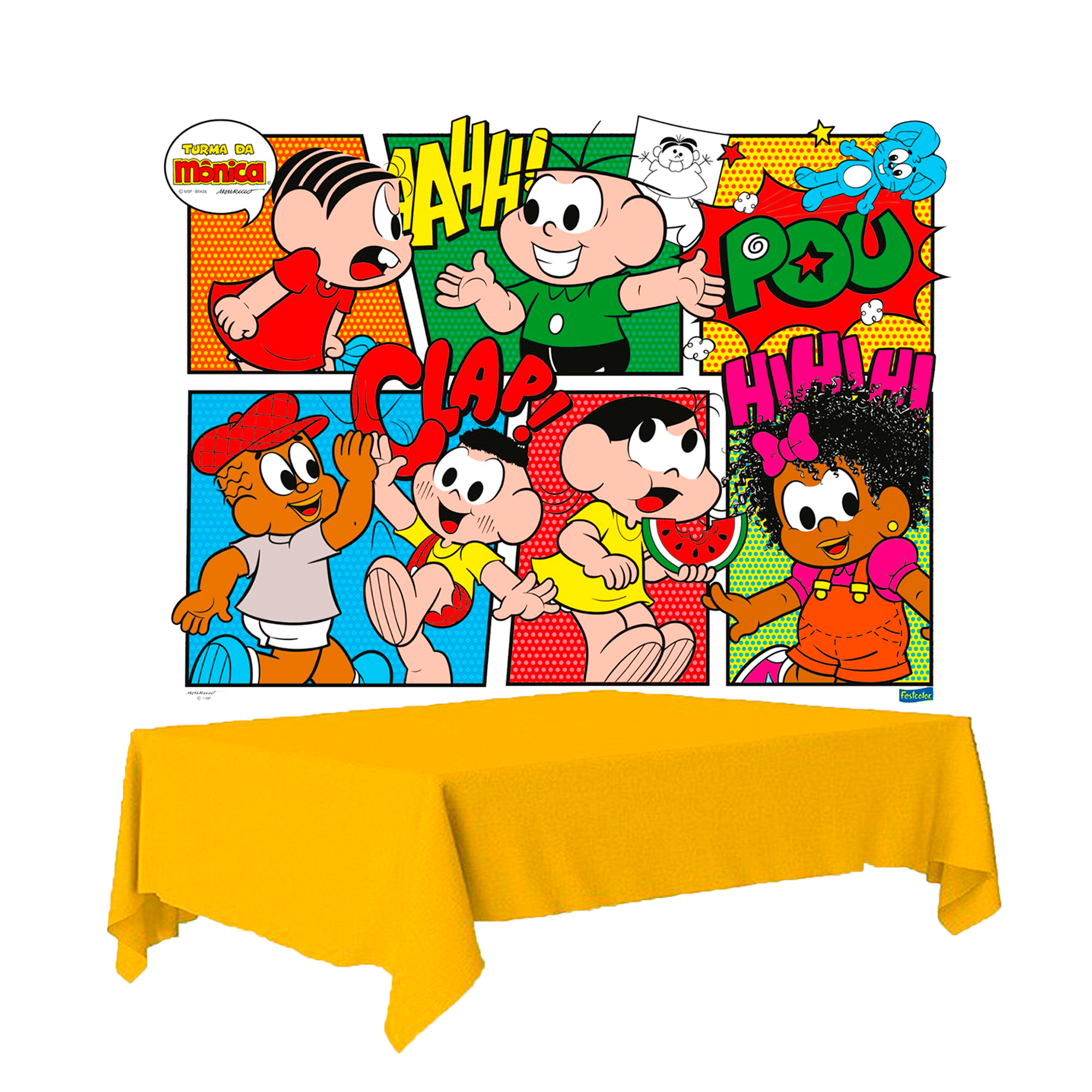 Kit festa Turma da monica Decoração Painel + Toalha Amarelo