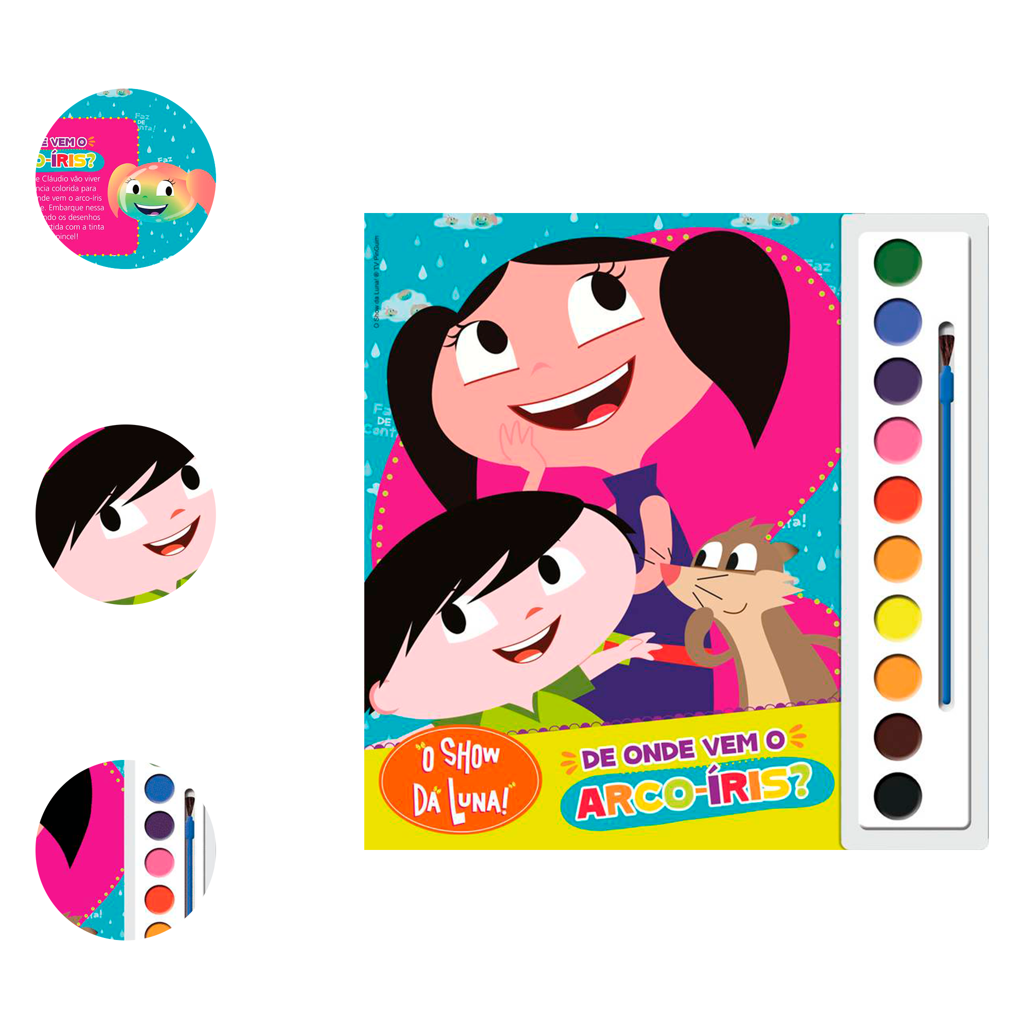 O livro apresenta ilustrações inspiradas na série O Show da Luna, prontas para serem coloridas com aquarela. A criança pode pintar, brincar e aprender enquanto desenvolve habilidades como coordenação motora, concentração e criatividade.