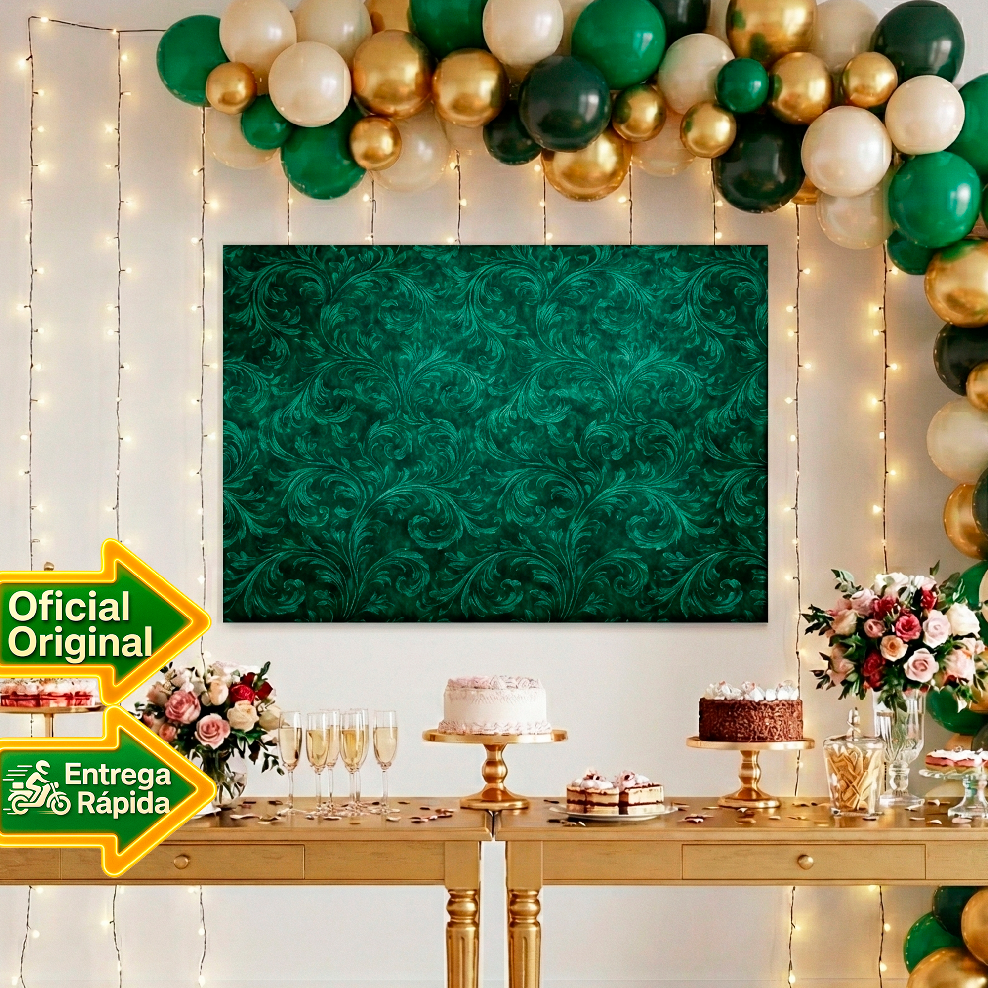 Título: Painel Festa Floral Verde Musgo – Decoração de Aniversário 1,40m x 1m
