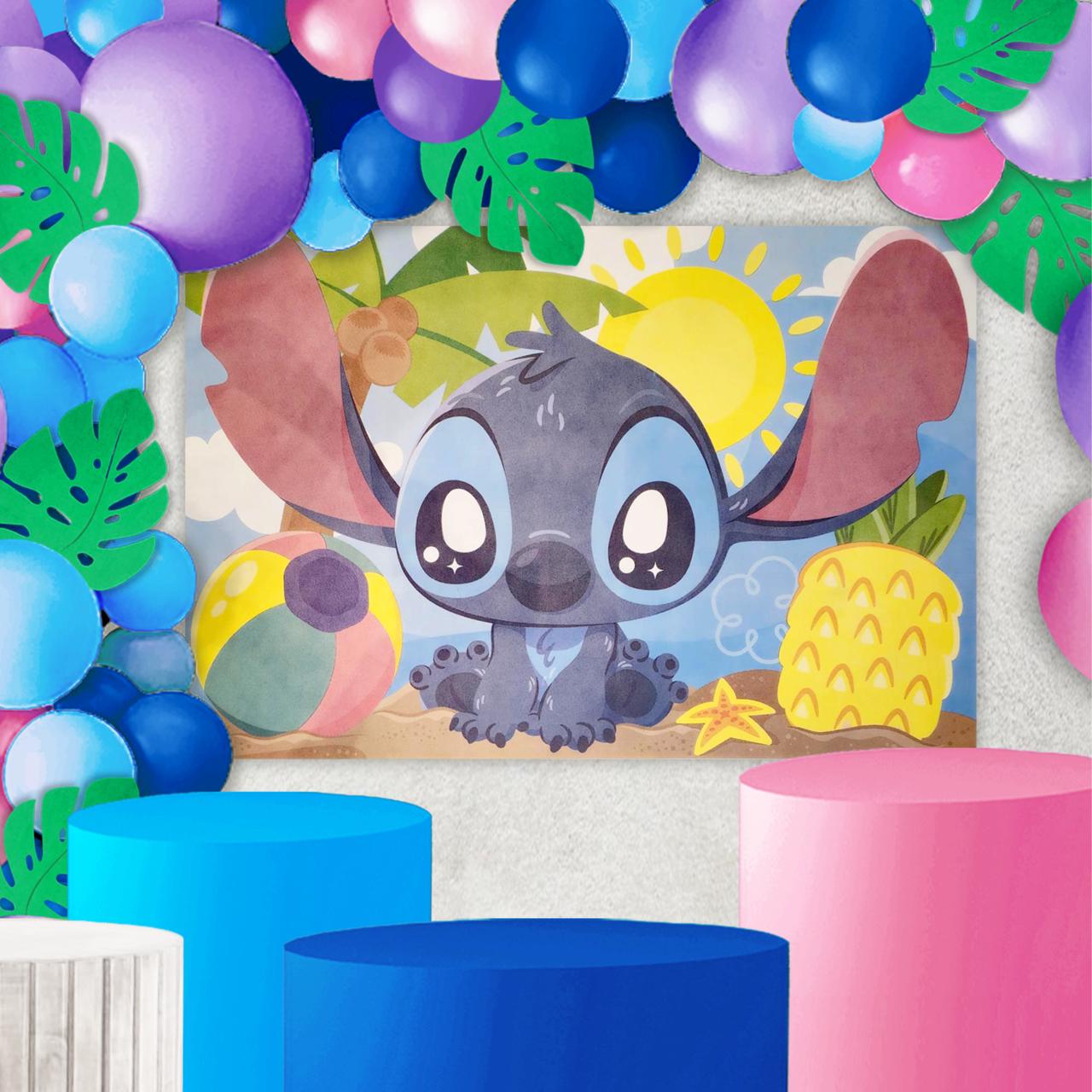 Com arte delicada e fofa, este painel traz o personagem Stitch em estilo baby, ideal para festas com tema infantil. Pode ser usado para decorar a parede atrás da mesa do bolo, como cenário de fotos ou em qualquer espaço que precise de um toque especial. Leve, fácil de instalar e prático de guardar.