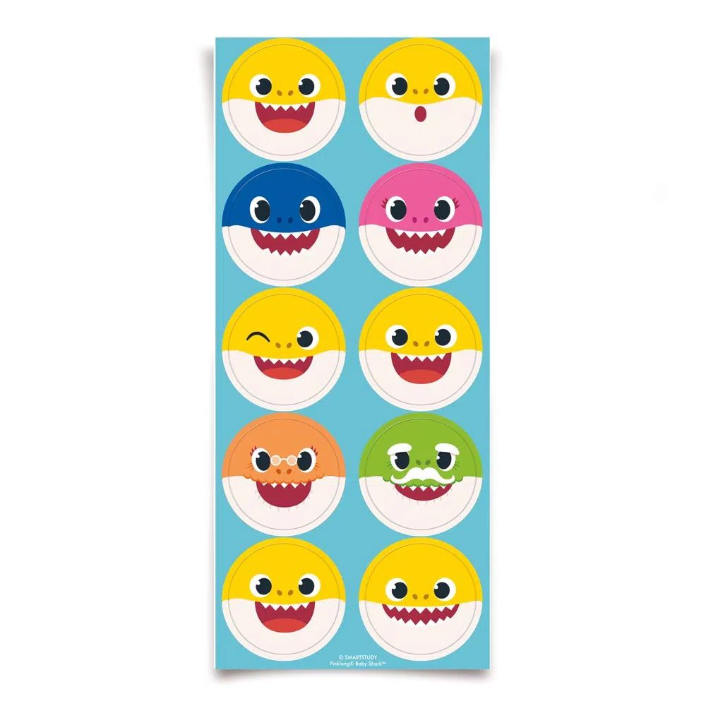 30 Adesivos Redondo Decoração BABY SHARK Festa
