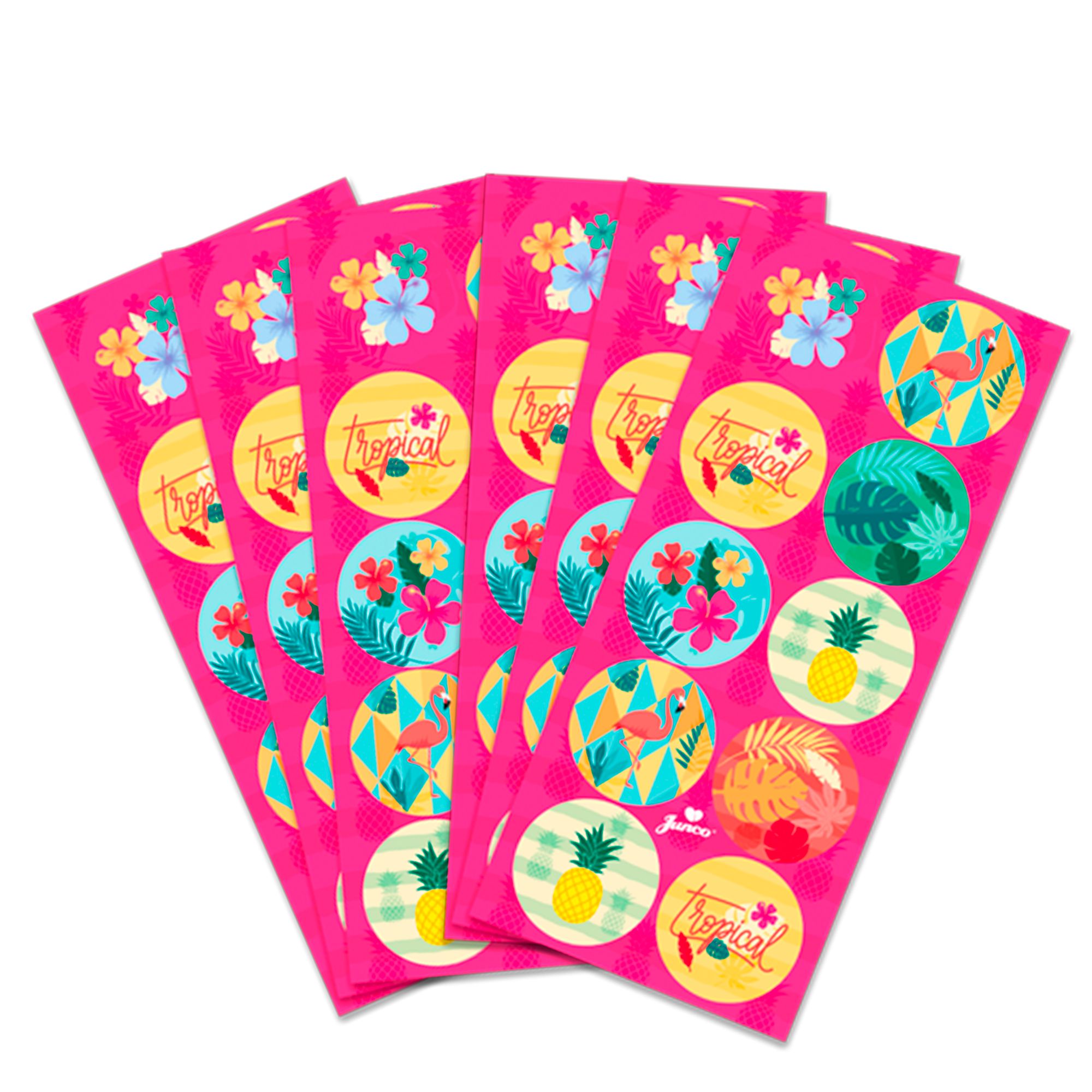 30 Adesivos Redondo Decoração Flamingo Festa Aniversário