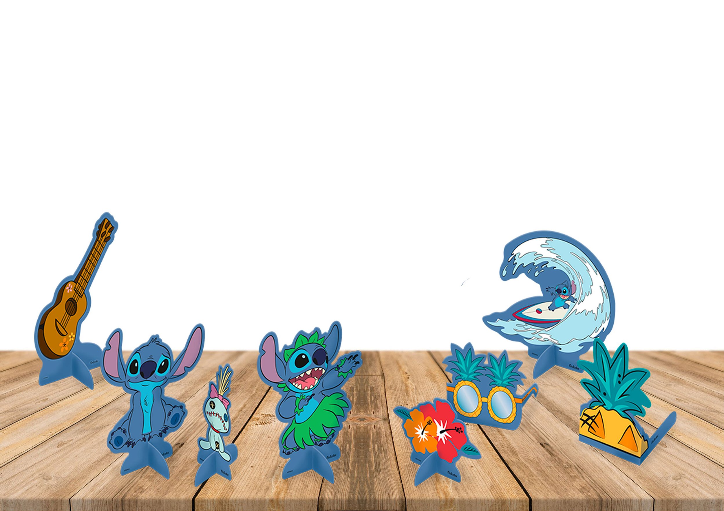 Peças decorativas para mesa principal e mesa de convidados. Uma decoração prática e encantadora! Oito personagens recortados + oito suportes de fácil encaixe para mantê-los em pé. Apresentação solapa e saco plástico.