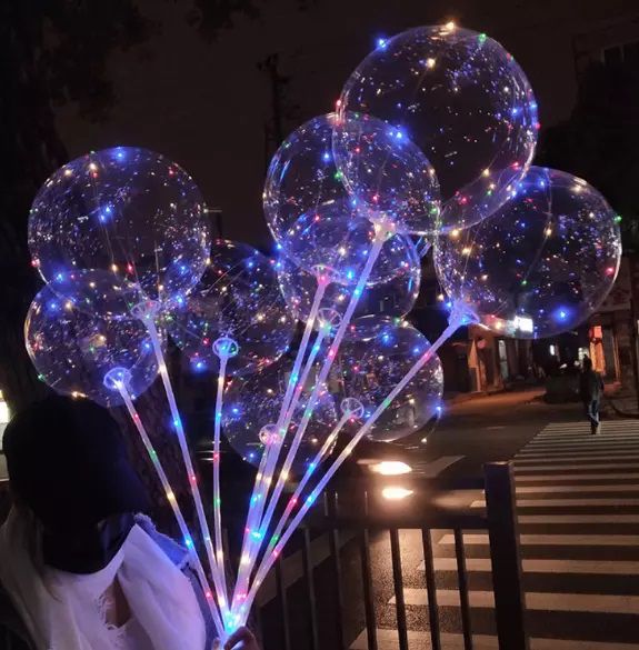 BALAO TRANSPARENTE COM LED COLORIDOS BASE ROSA UN