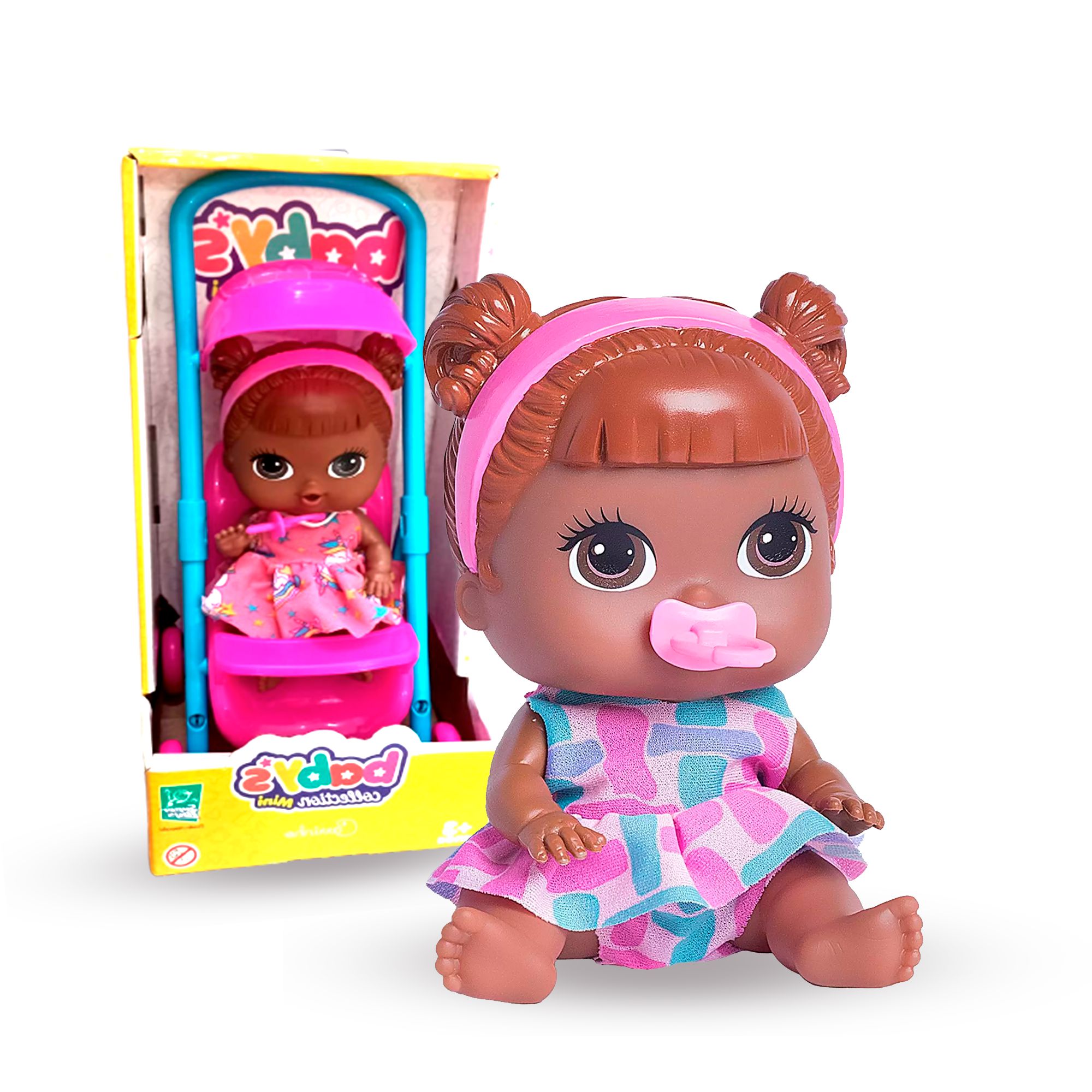 Conteúdo da Embalagem: 01 Mini Boneca + 01 Mini Carrinho + 01 chupeta