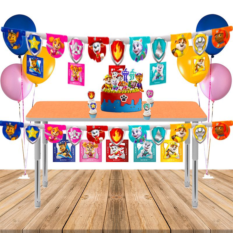 Faixa parabéns bandeirola Patrulha canina decoração festa