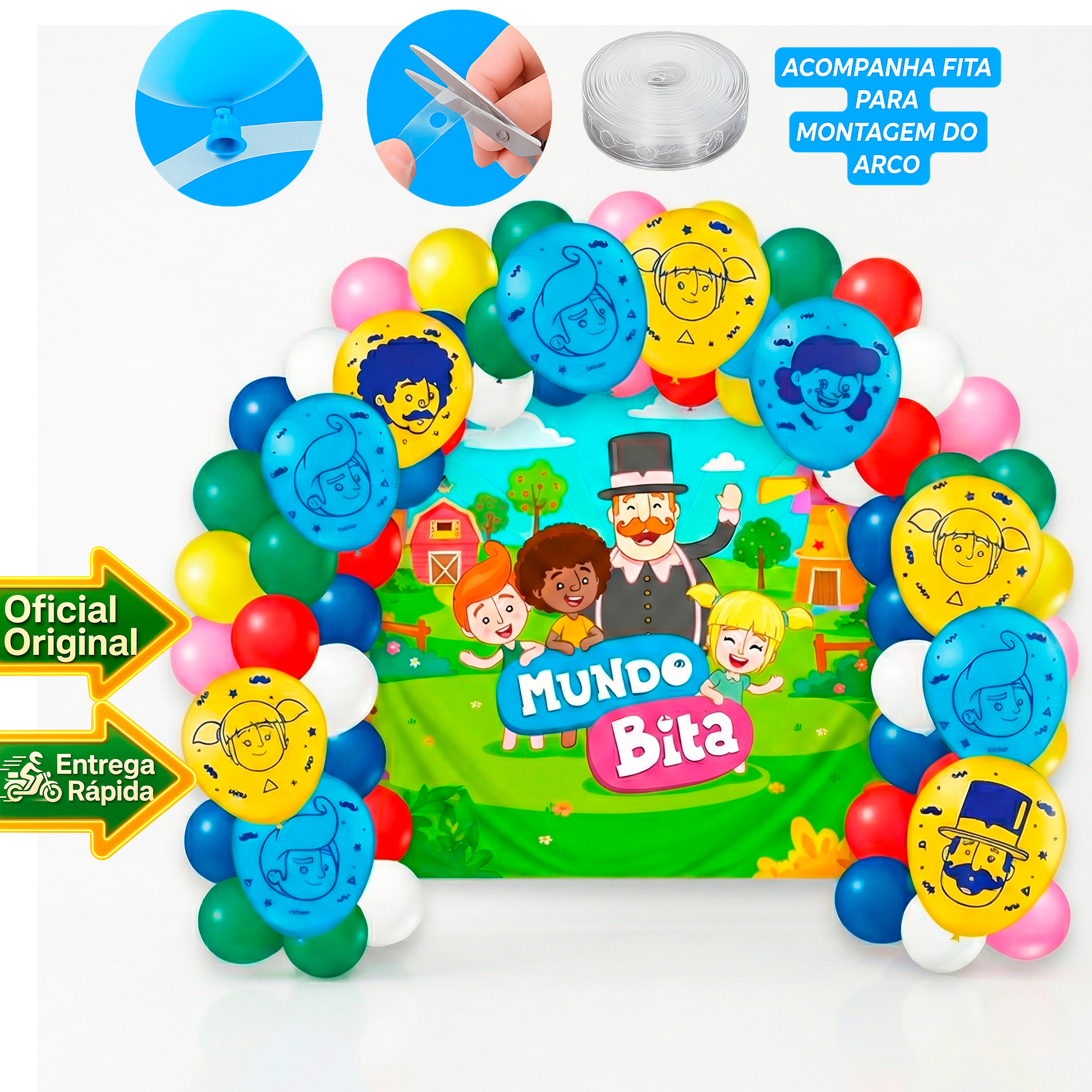 Kit Decoração Mundo Bita Arco Desconstruido Fita + 5 balões