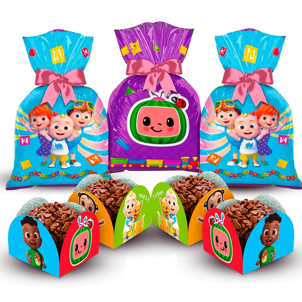 Kit Festa Cocomelon Decoração 100 Forminhas + 12 Sacolas surpresa