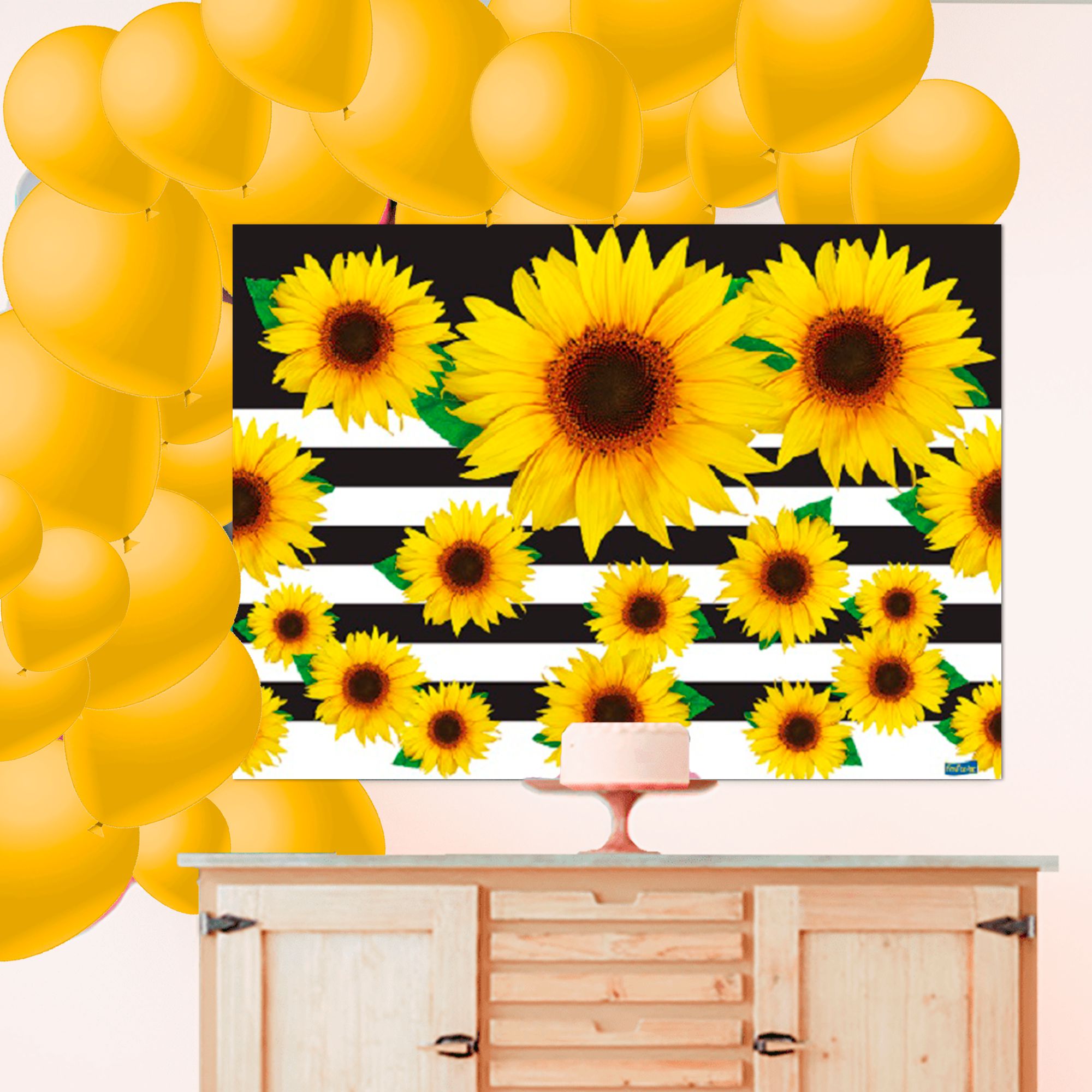 Kit Festa completo 51 pçs Decoração Girassol Painel + Balão