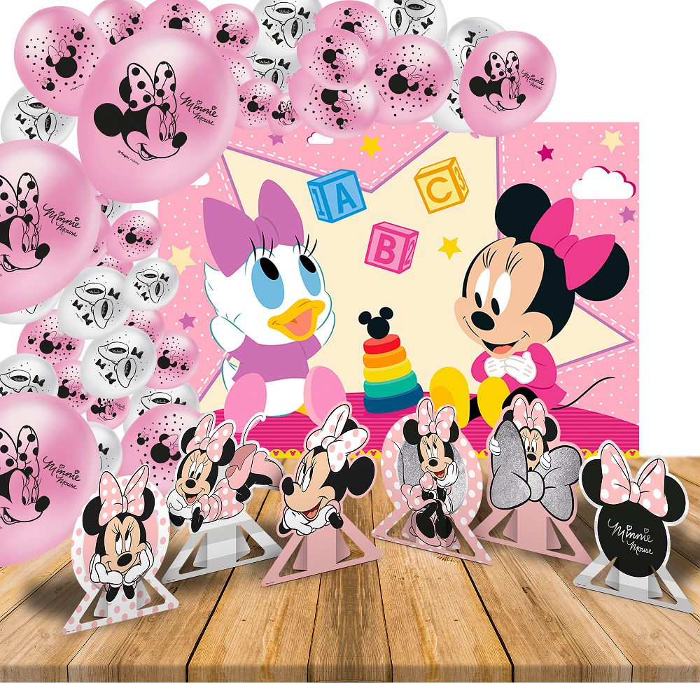 Kit festa Decoração Minnie Rosa 25 Balões + Painel 1,26m GG