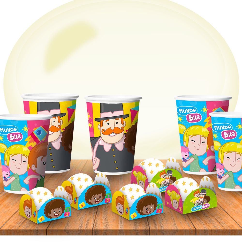 Kit Festa decoração Mundo Bita 50 forminhas + 8 Copos