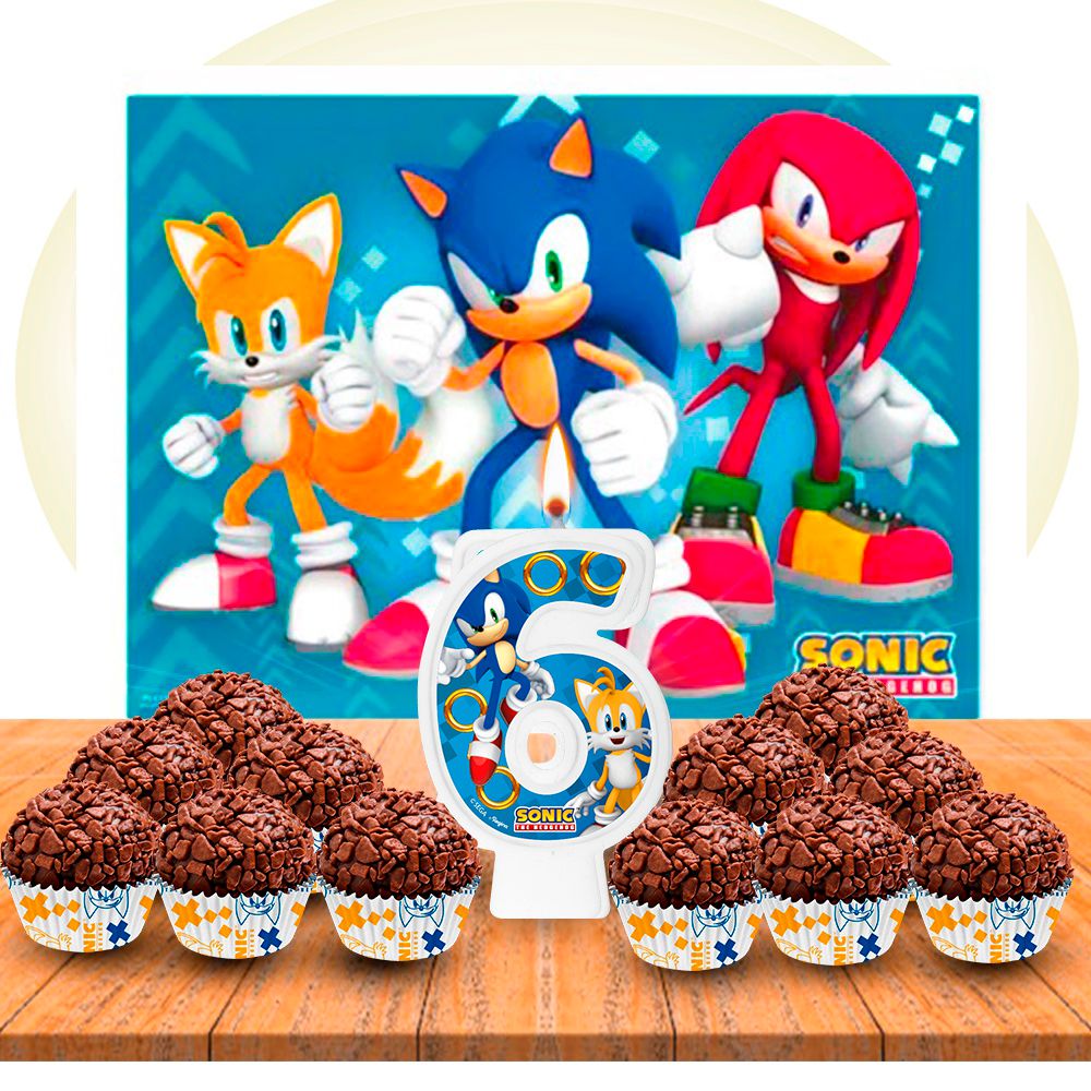 Kit Festa Decoração Sonic Painel Gigante + Forminhas+ Vela 6