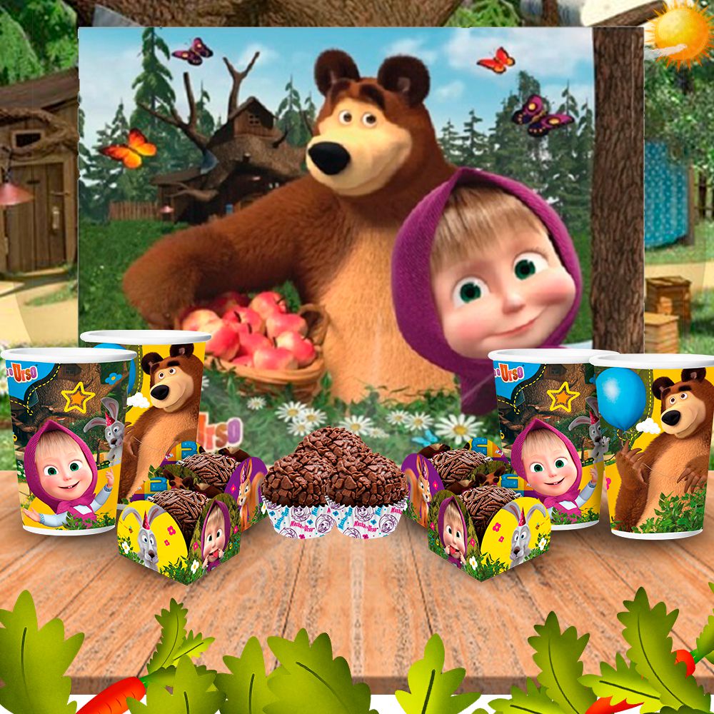 Kit festa Masha e o Urso Decoração festa aniversário 97 pçs