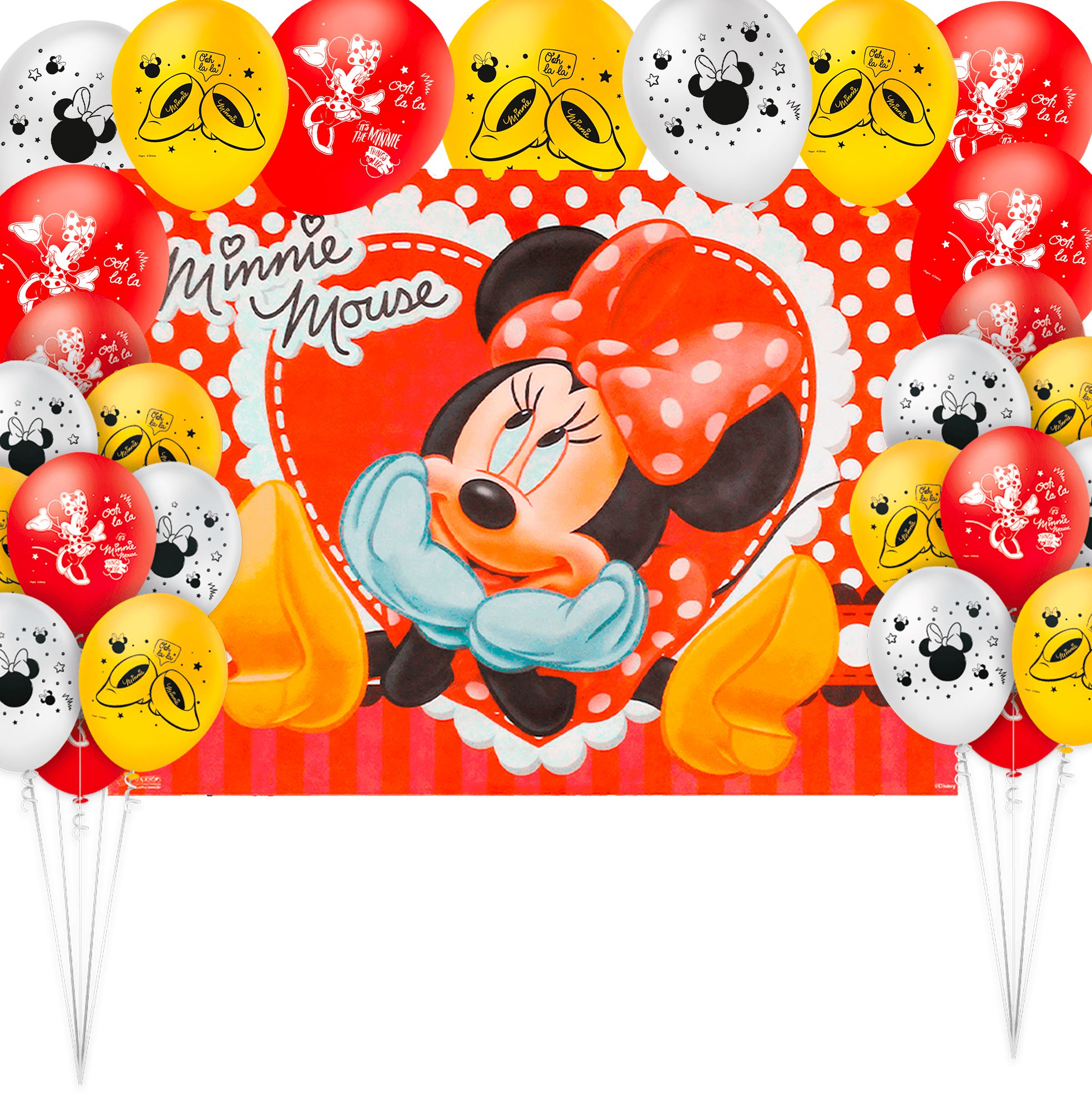 Kit Festa Minnie Mouse Decoração Painel Gigante + 25 Balões