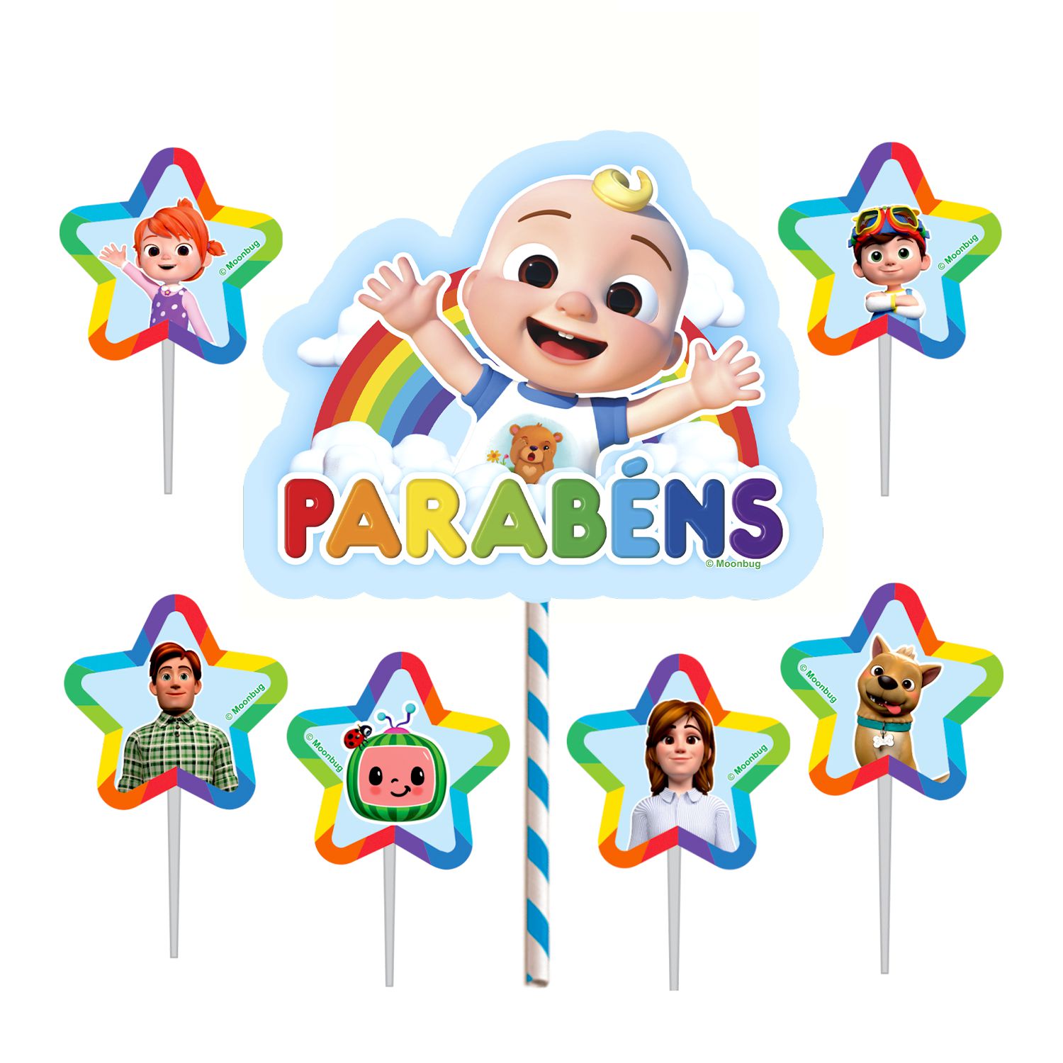 Topo de bolo decoração Cocomelon Festa topper completo