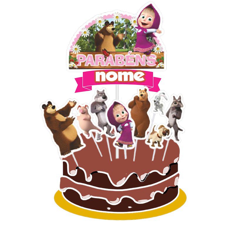 Topo de bolo Masha e Urso topper decoração festa aniversário personalizado