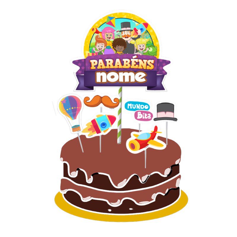 Topo de bolo Mundo Bita topper decoração festa aniversário personalizado