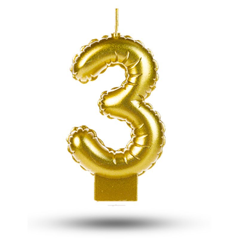 Vela balão Número 3 Dourada Decoração Festa aniversário