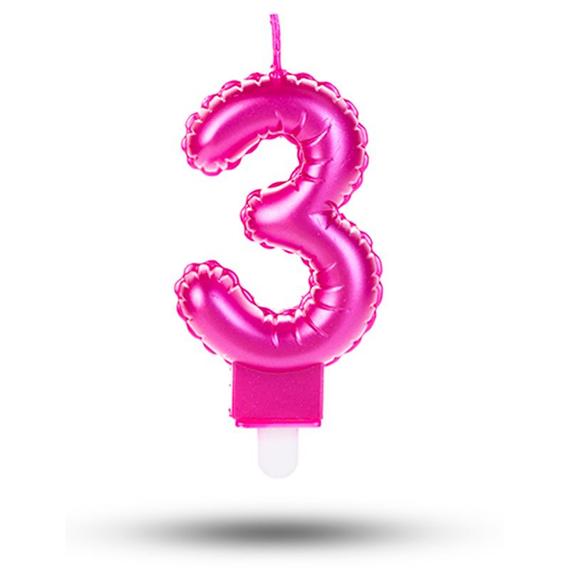 Vela balão Número 3 Rosa Decoração Festa aniversário