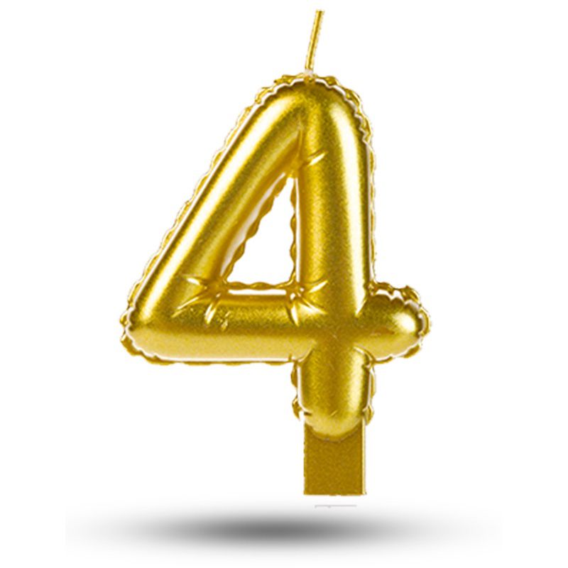 Vela balão Número 4 Dourada Decoração Festa aniversário