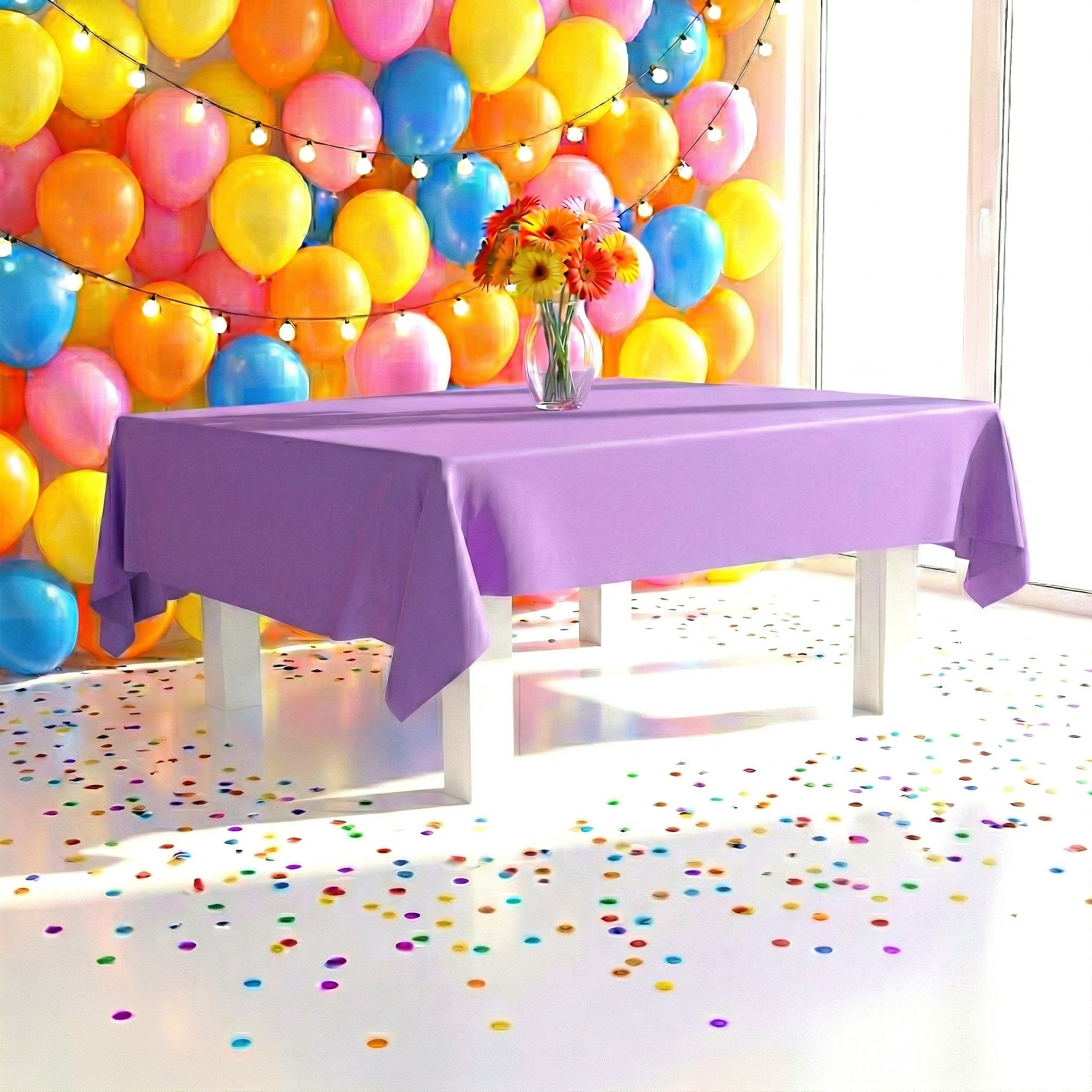 Toalha de mesa em TNT na cor lilás, ideal para compor a decoração de festas e eventos com praticidade e elegância.