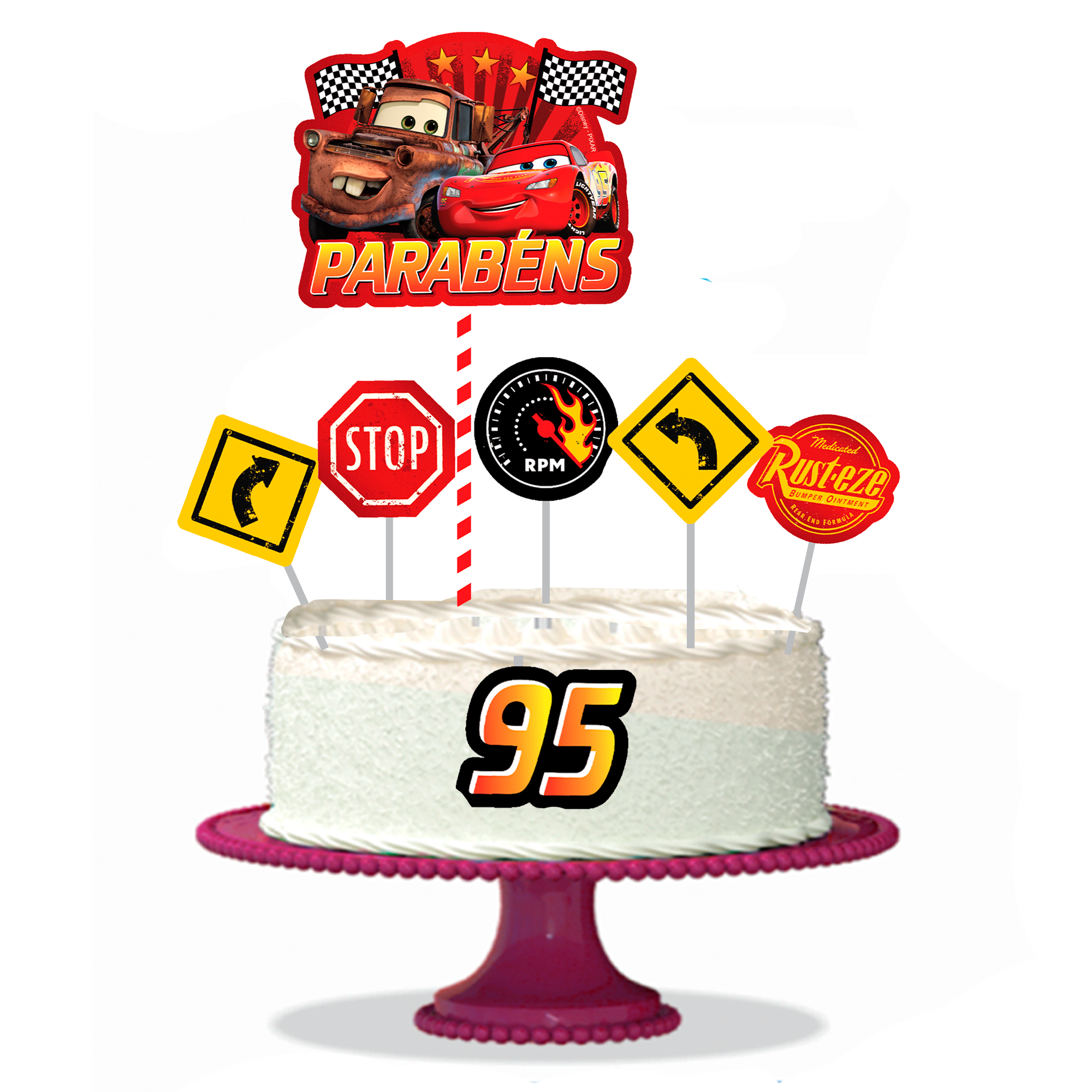 Topo de bolo Decoração Carros kit 7 peças Festa Aniversário
