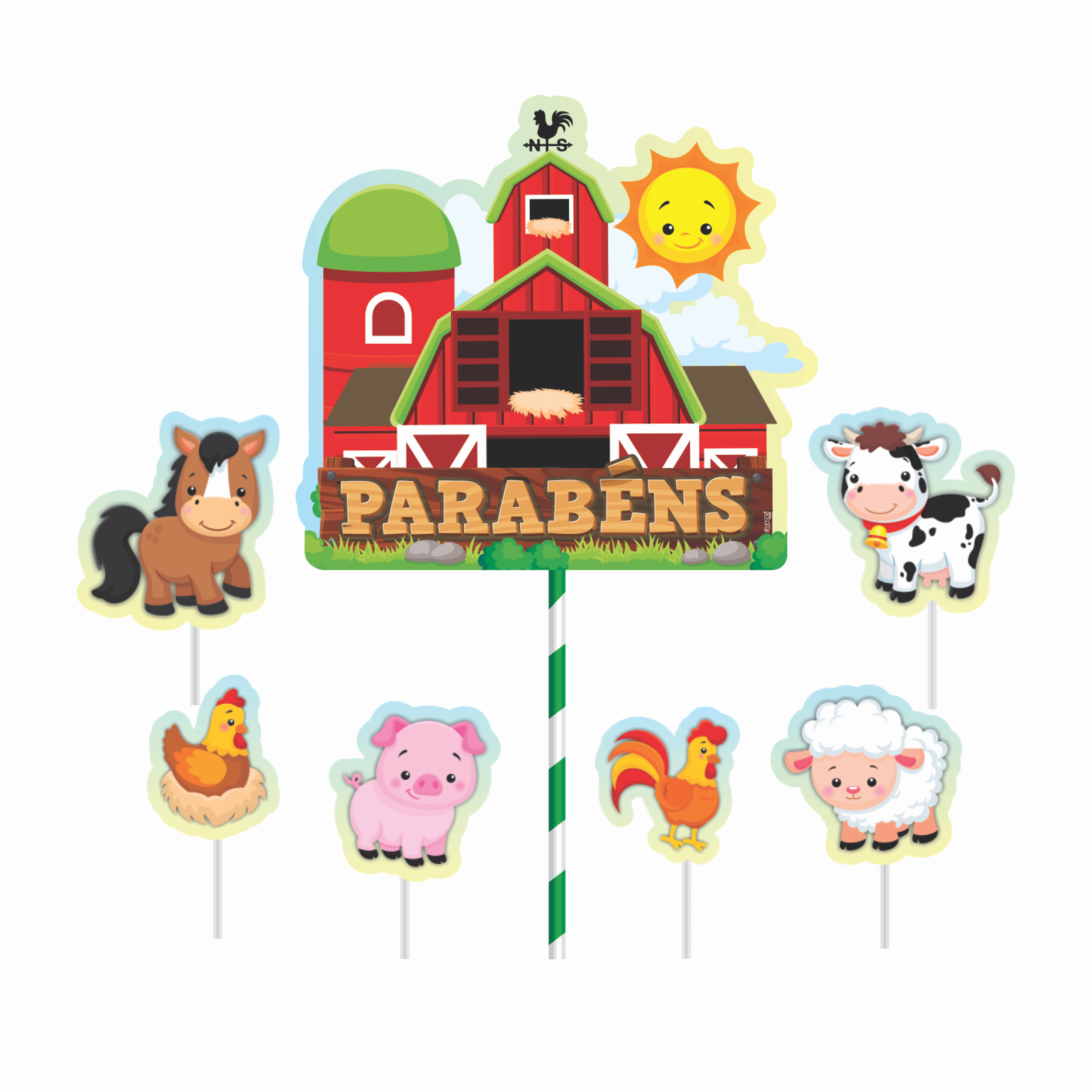 Topo de bolo Decoração Fazendinha kit 7 pçs Festa Aniversário