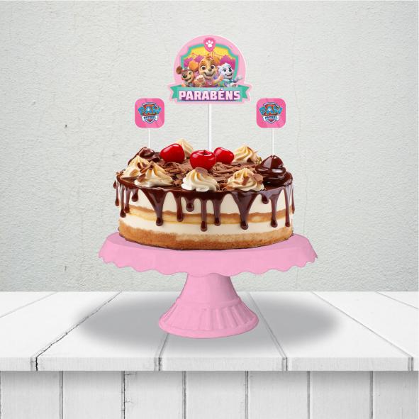 Topo de bolo festa Patrulha Canina Rosa Decoração Aniversári